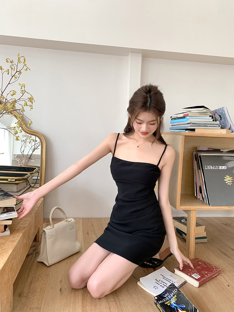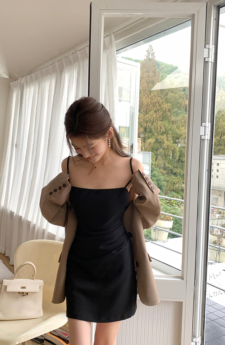 Fri. 氣質平口顯瘦收腰短洋裝 黑