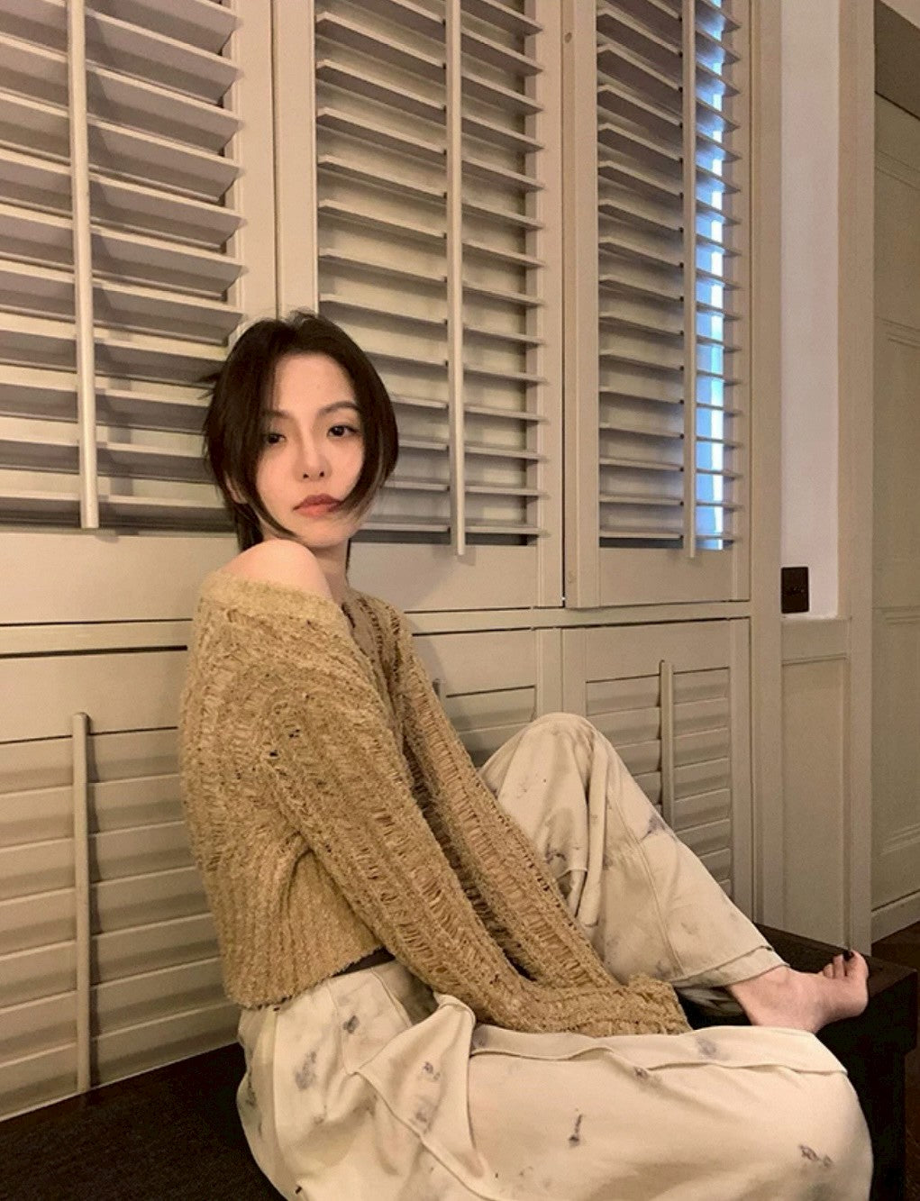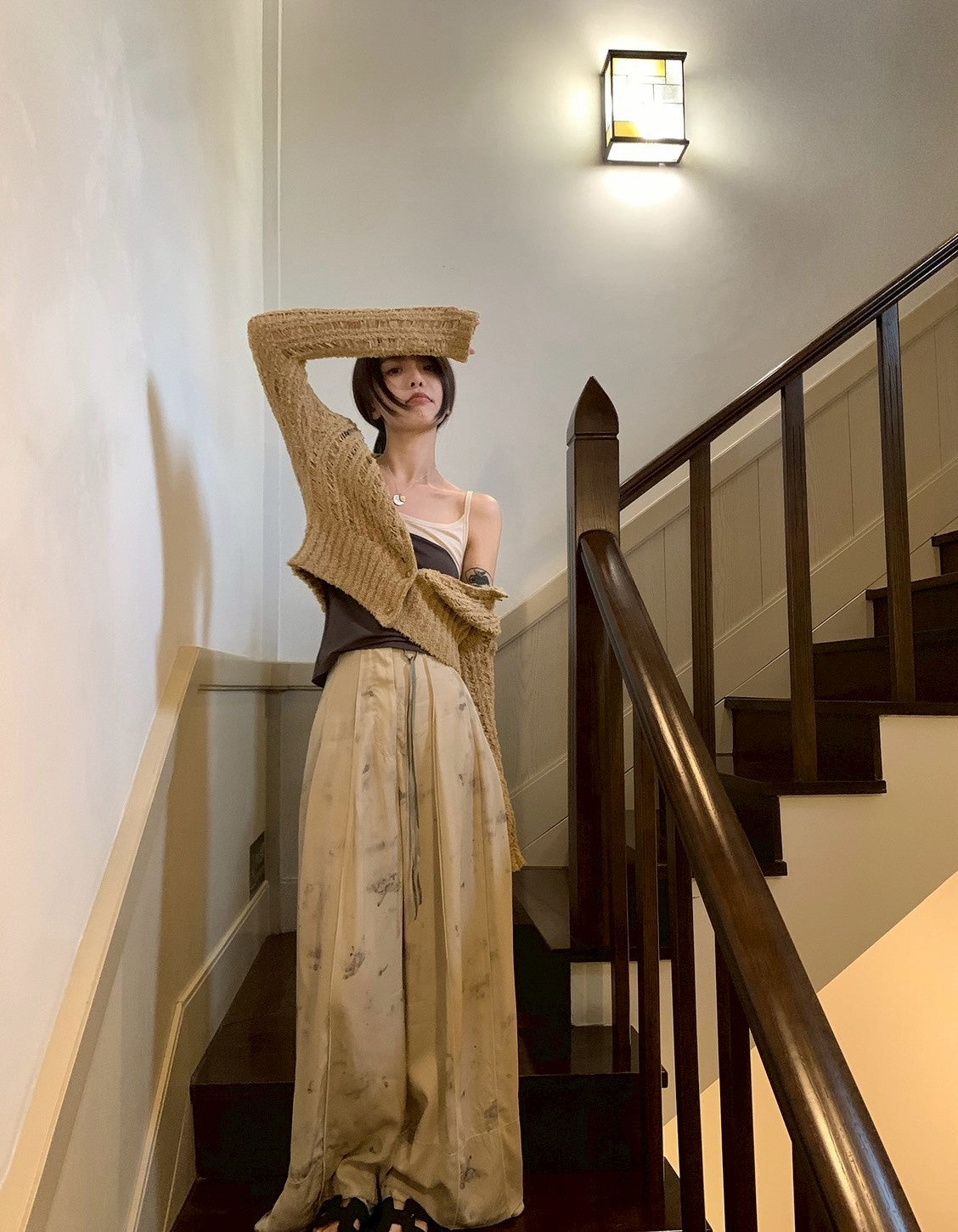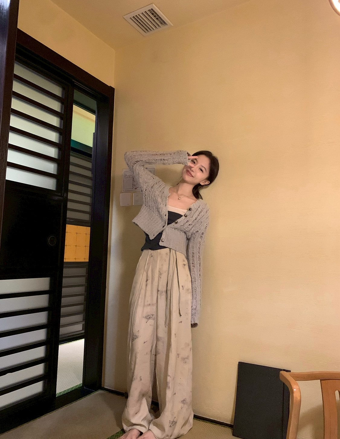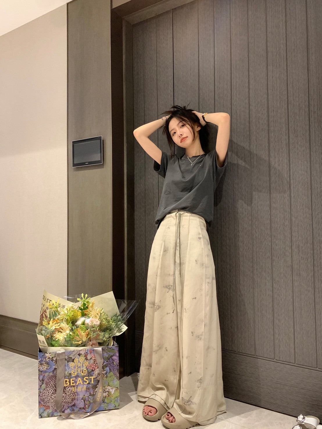 Fri. 水墨暈染中式印花高腰休閒褲 米