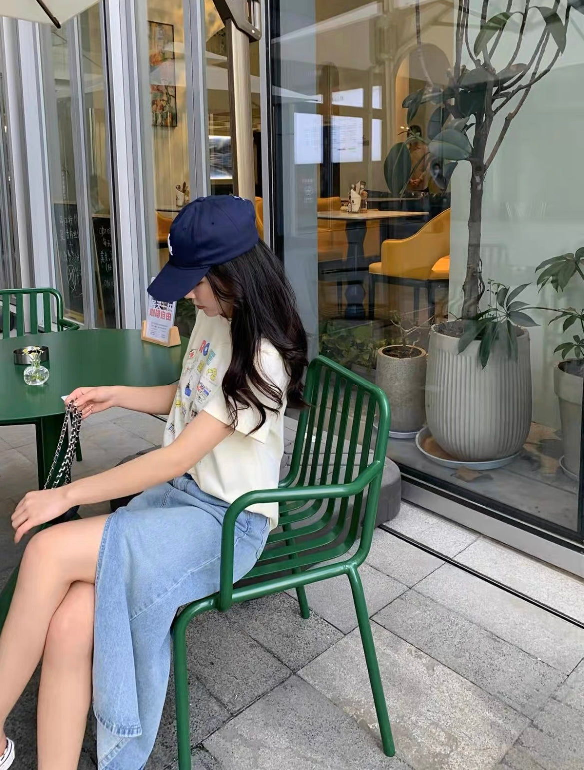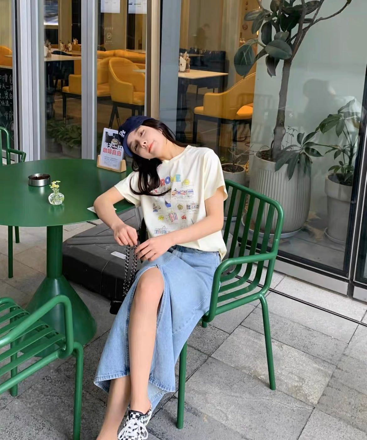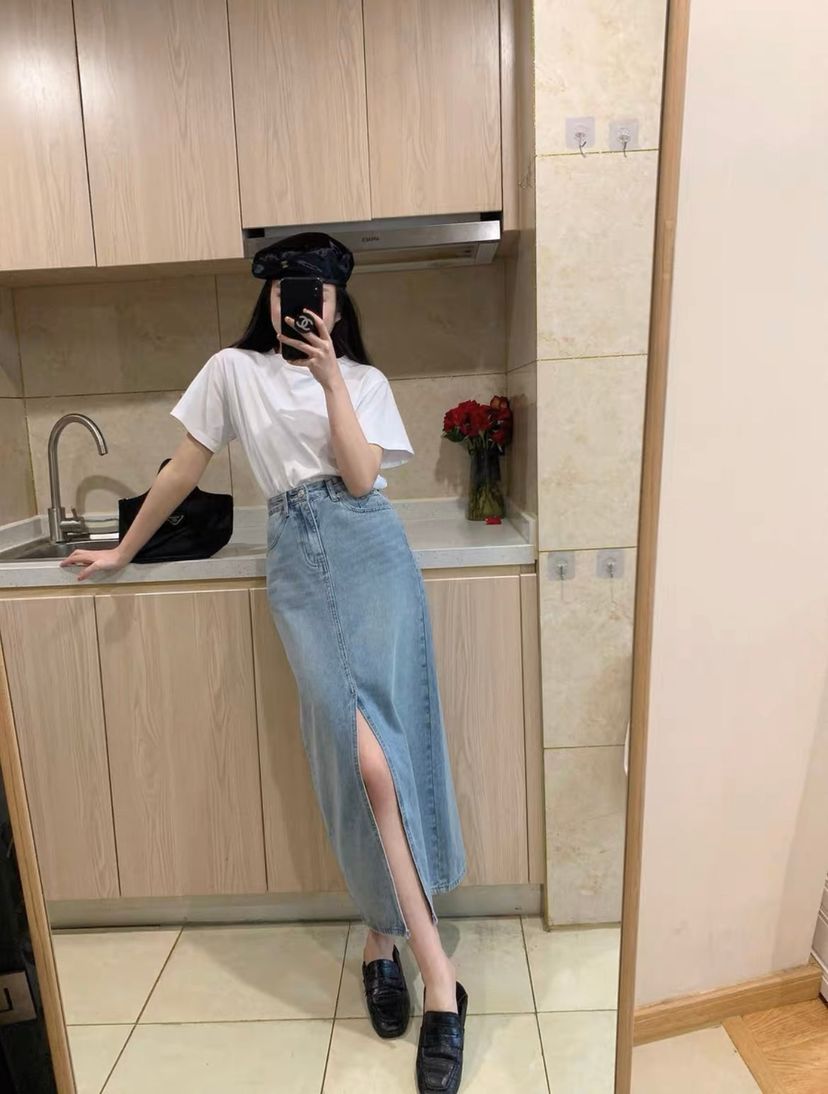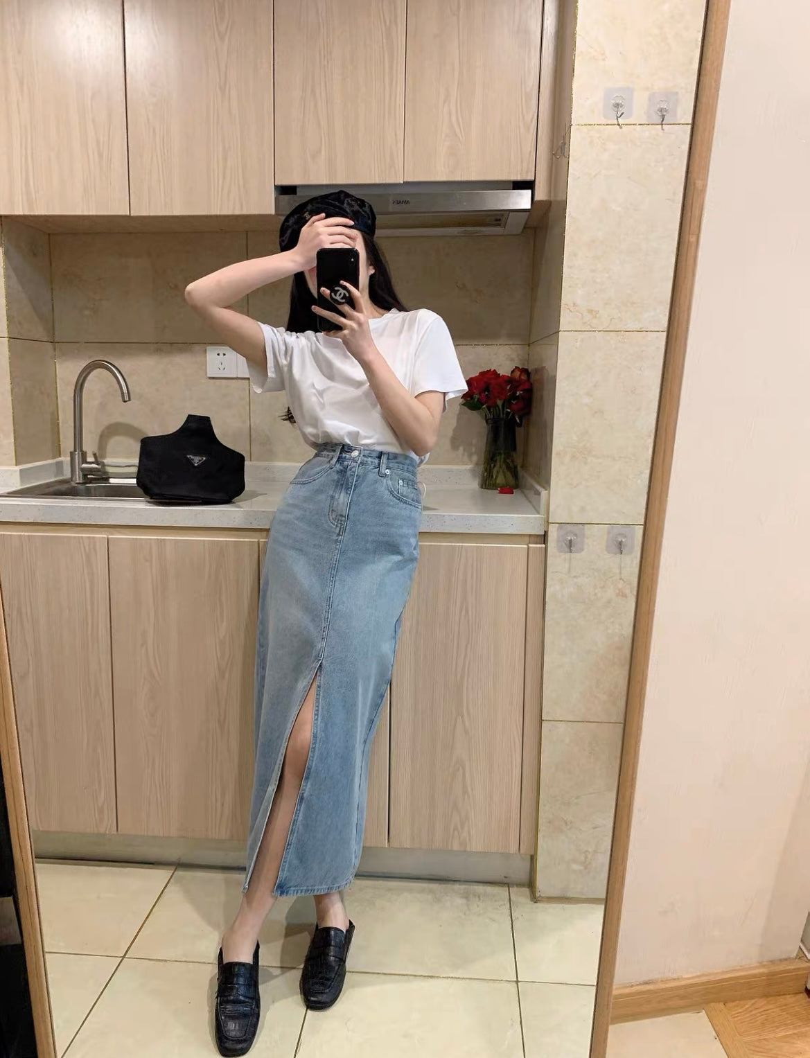 Fri. 淺色單寧牛仔開叉半身裙