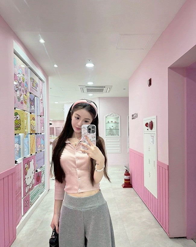 Fri. 簡單主義修身版型60支羊毛中袖單排上衣 燕麥/粉