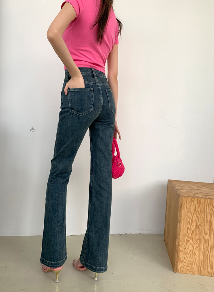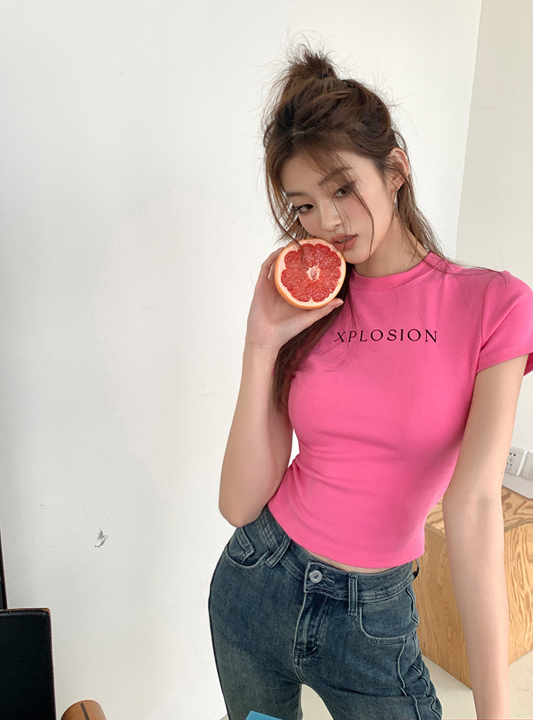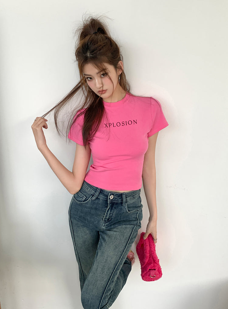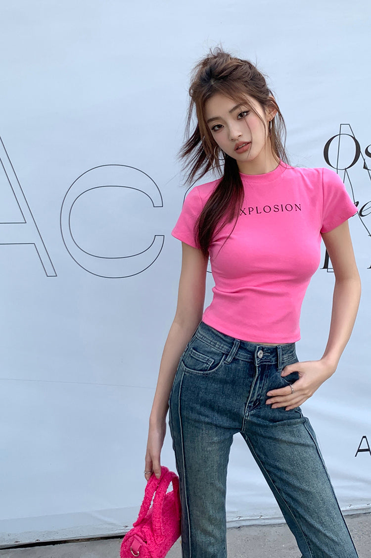 Fri. 美式短板上衣-粉 車縫修身喇叭褲