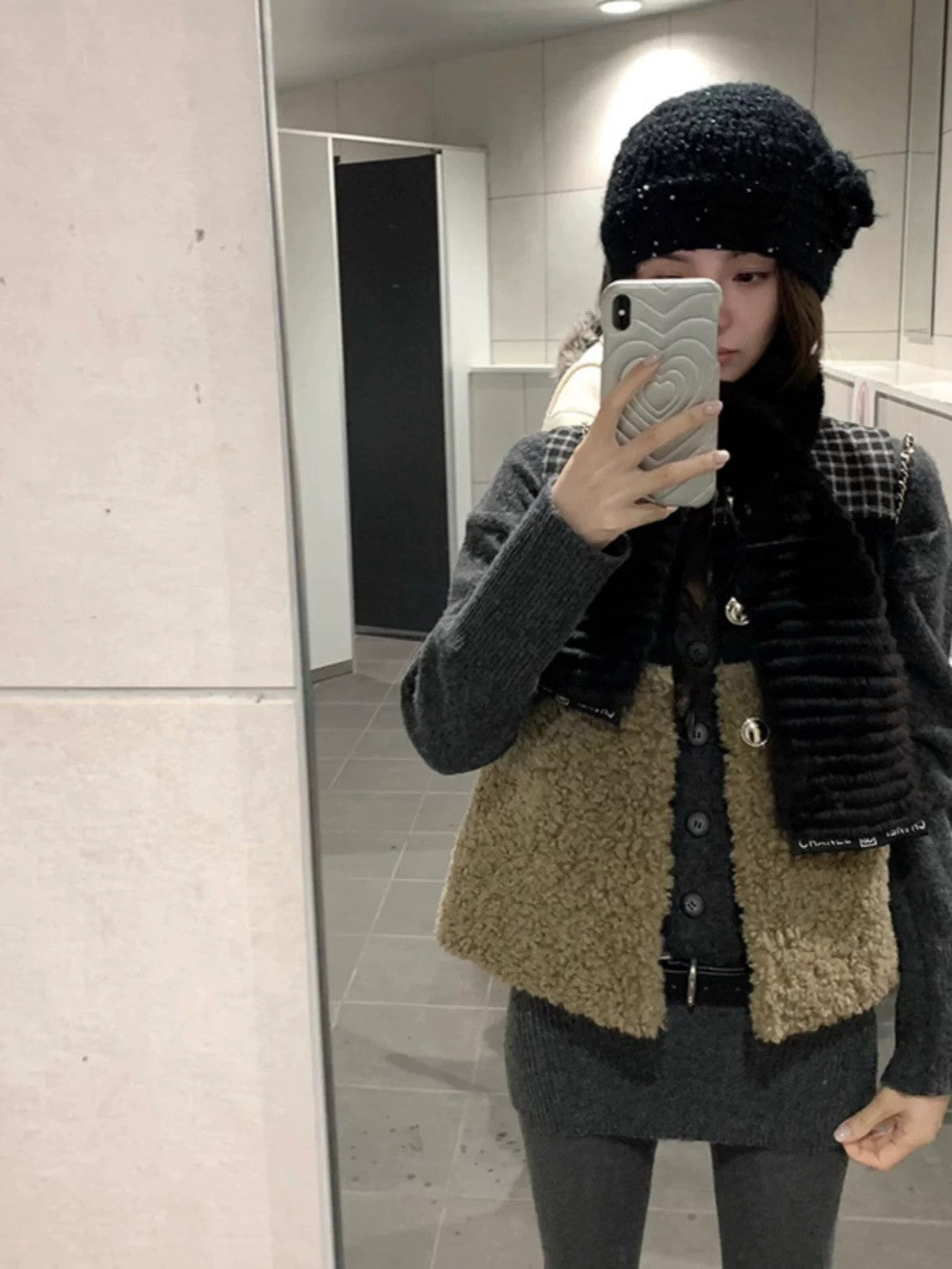 Fri. 羔羊毛暖綿綿復古撞色馬甲