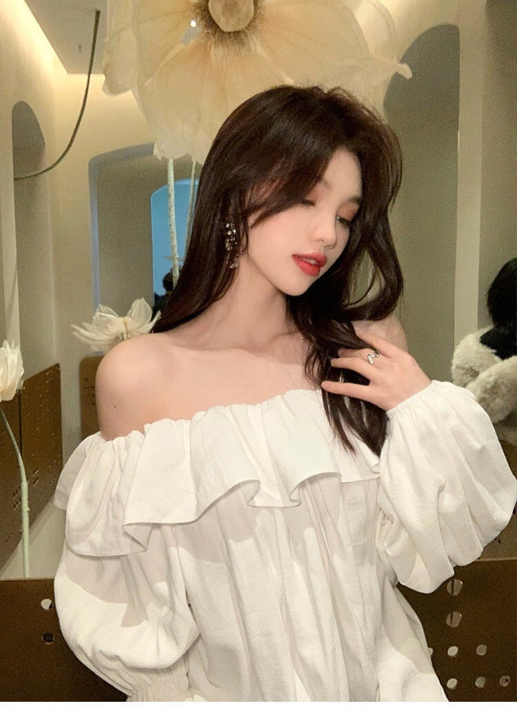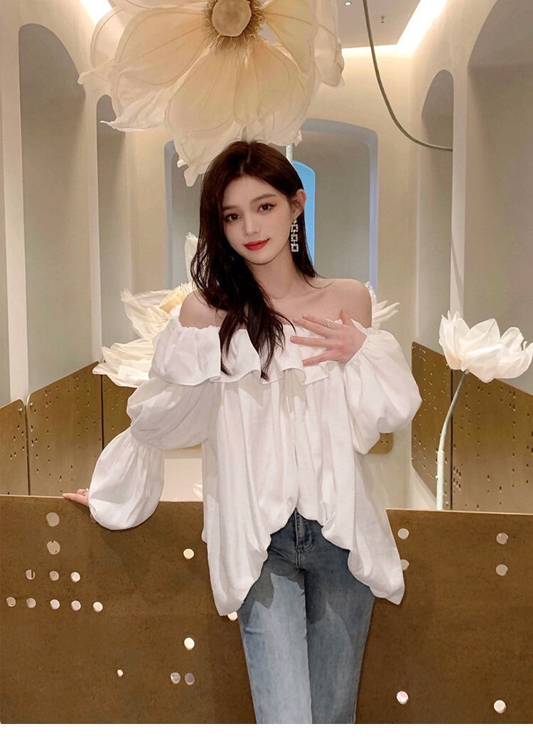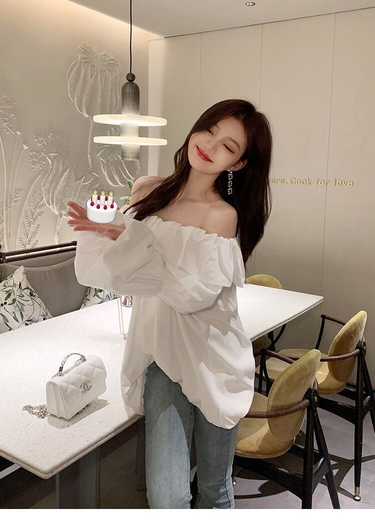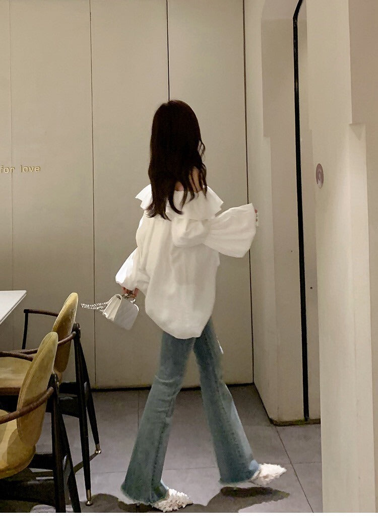 Fri. 韓chic氣質荷葉泡泡袖襯衫上衣