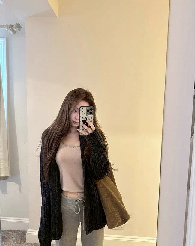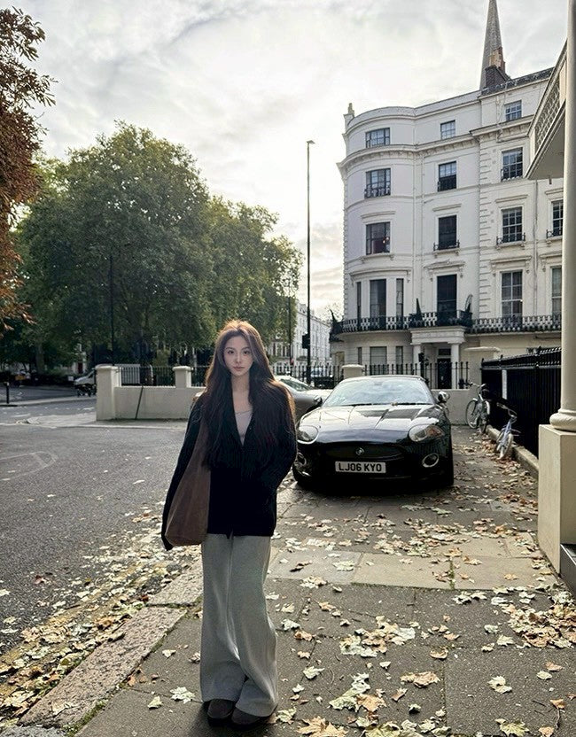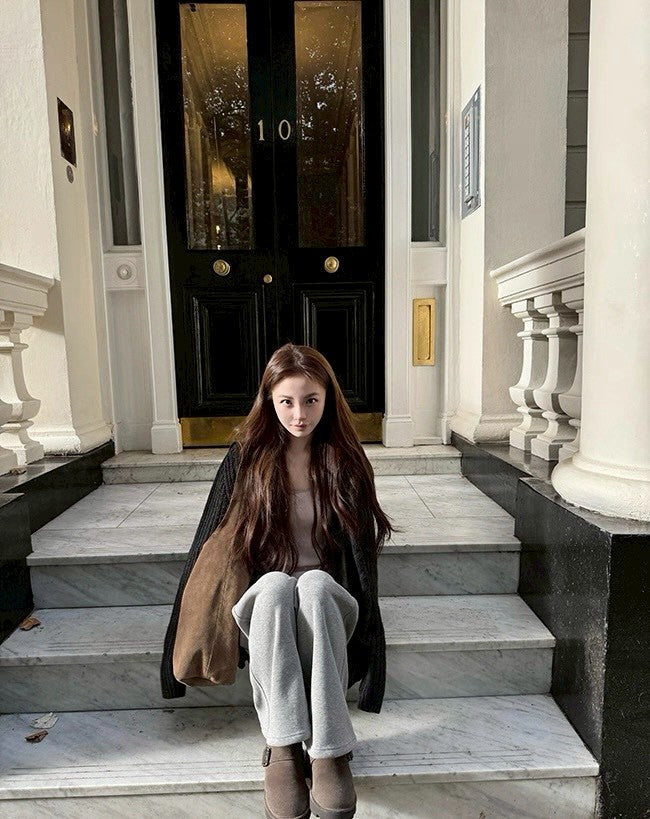 Fri. 高克重冬褲 銀狐絨寬腰抽繩喇叭褲 灰