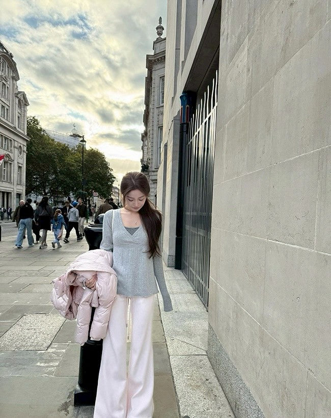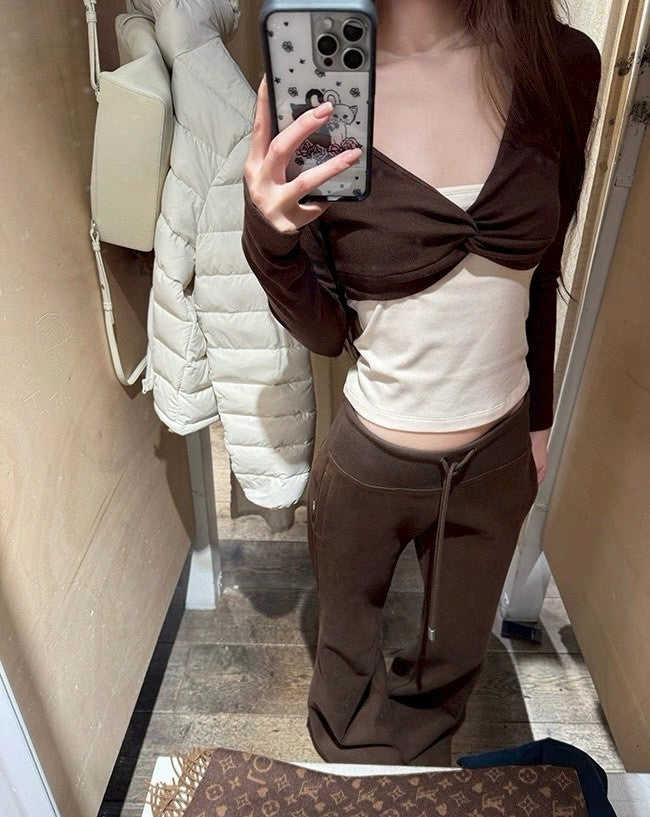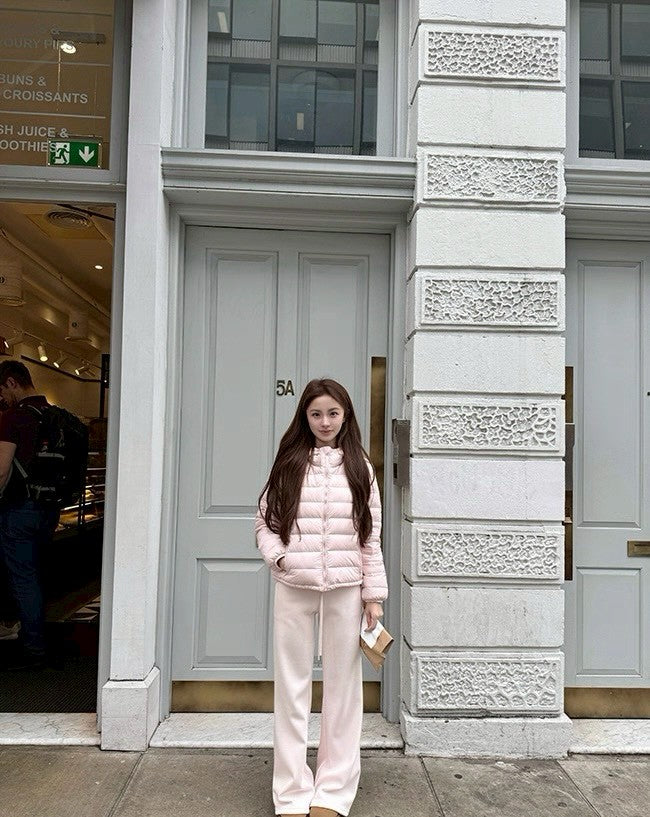 Fri. 高克重冬褲 銀狐絨寬腰抽繩喇叭褲 粉/咖