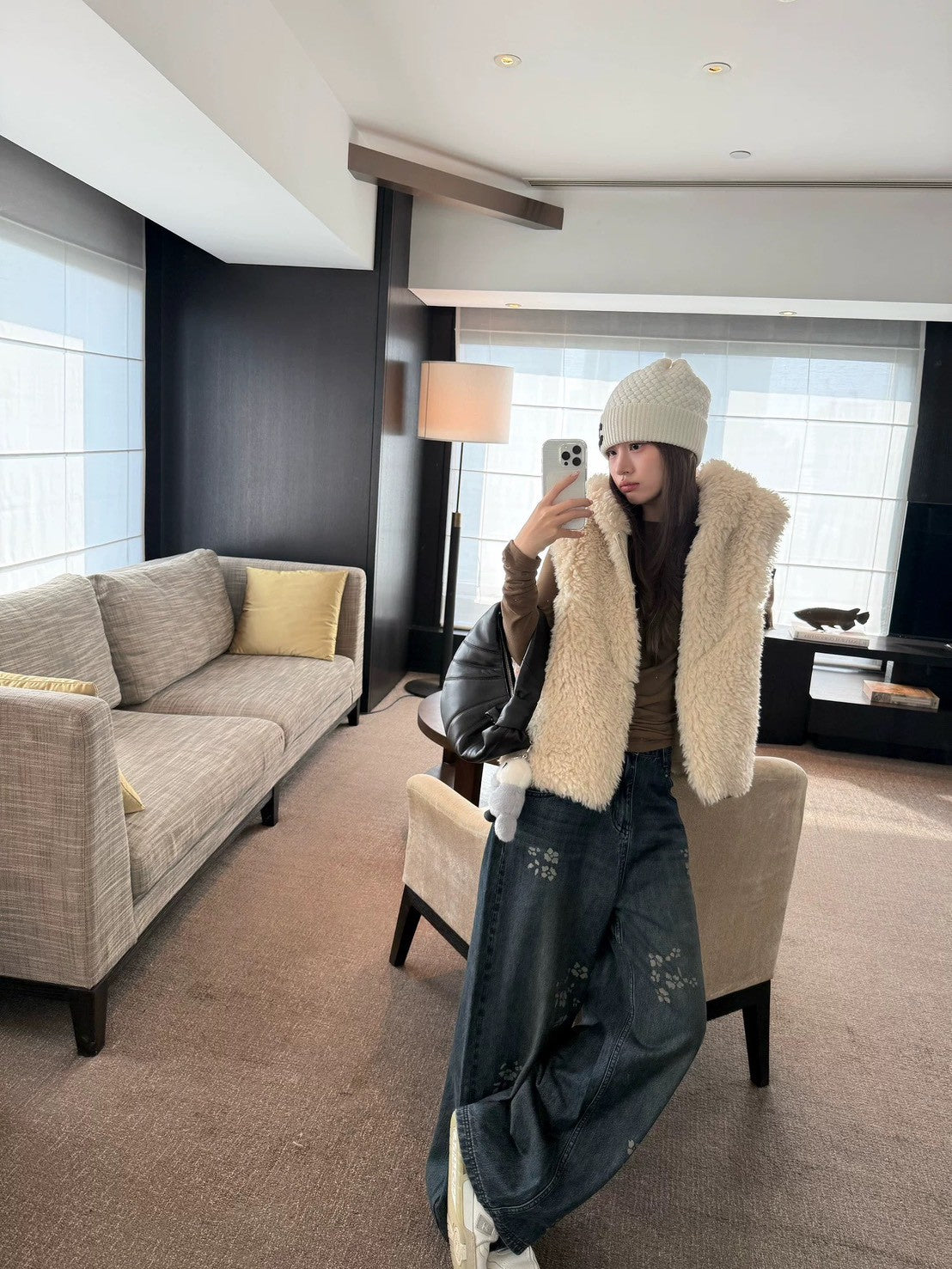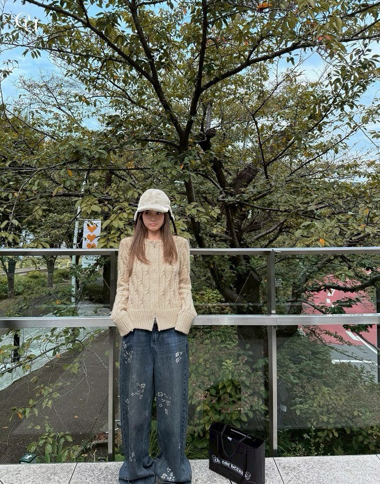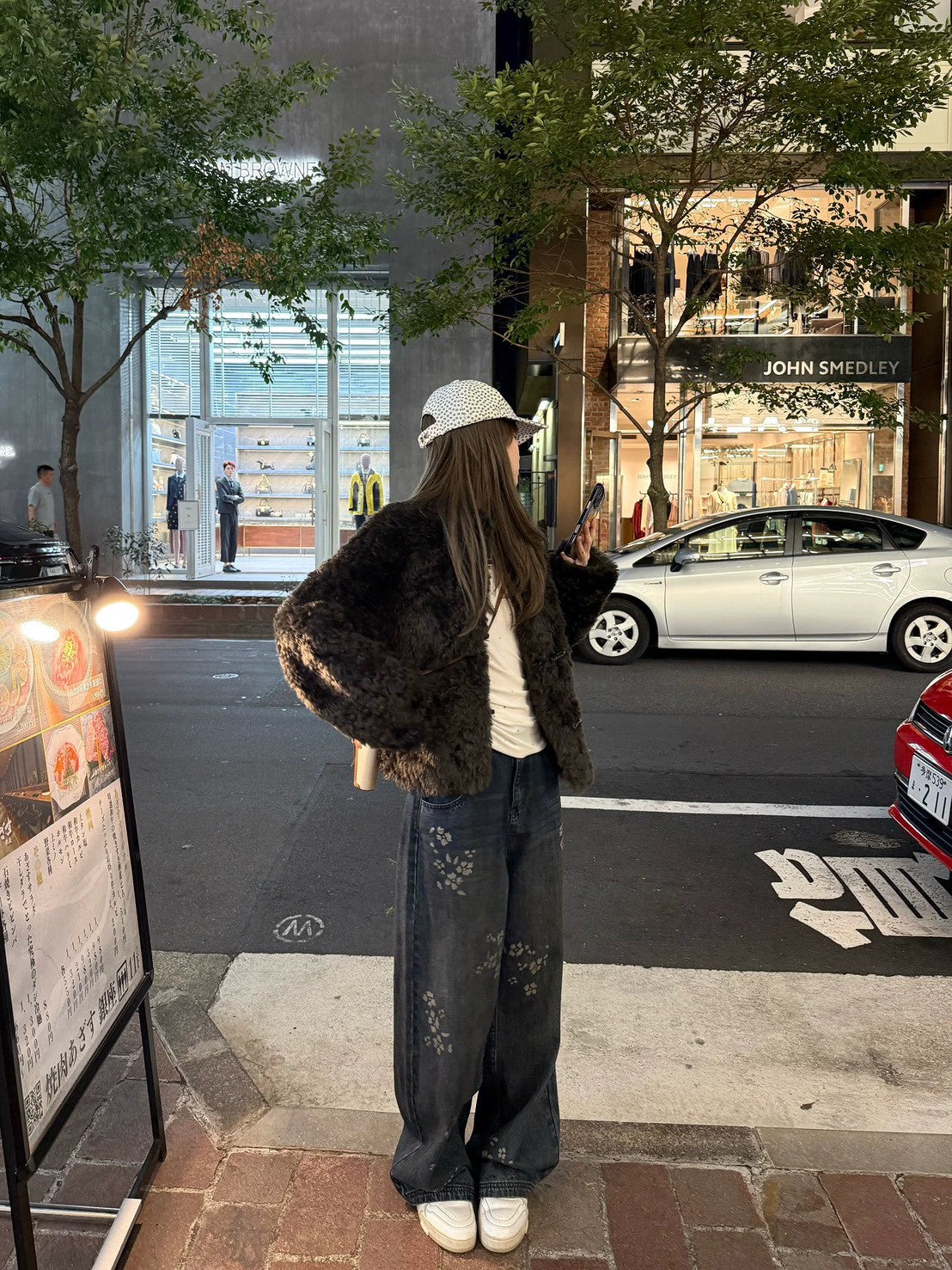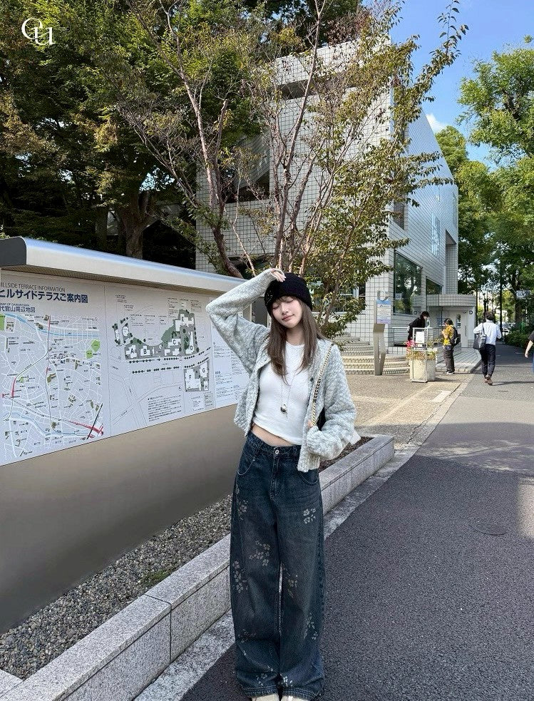 Fri. 高腰定染花貓鬚刷色闊腿褲