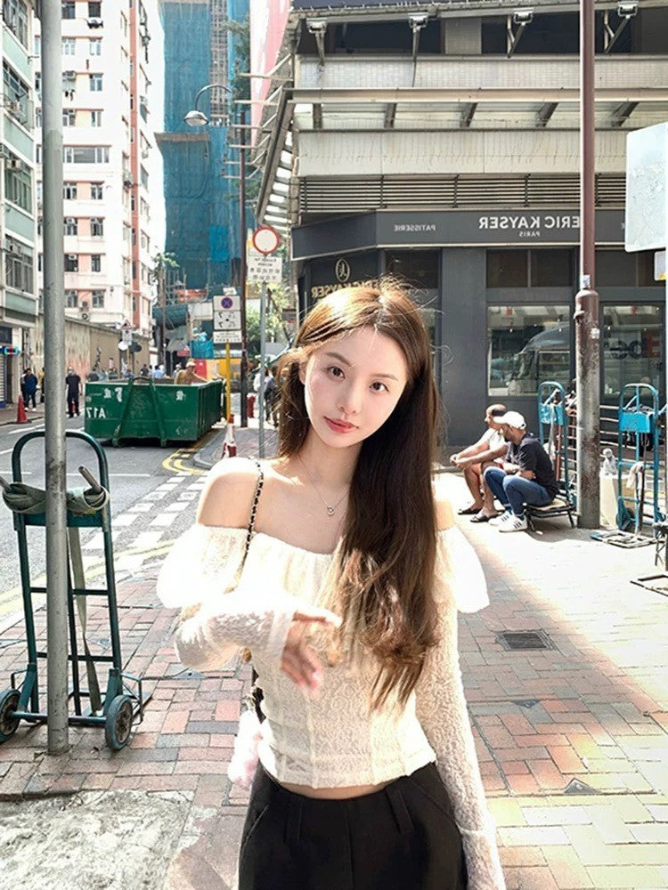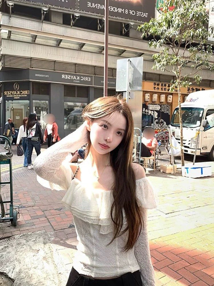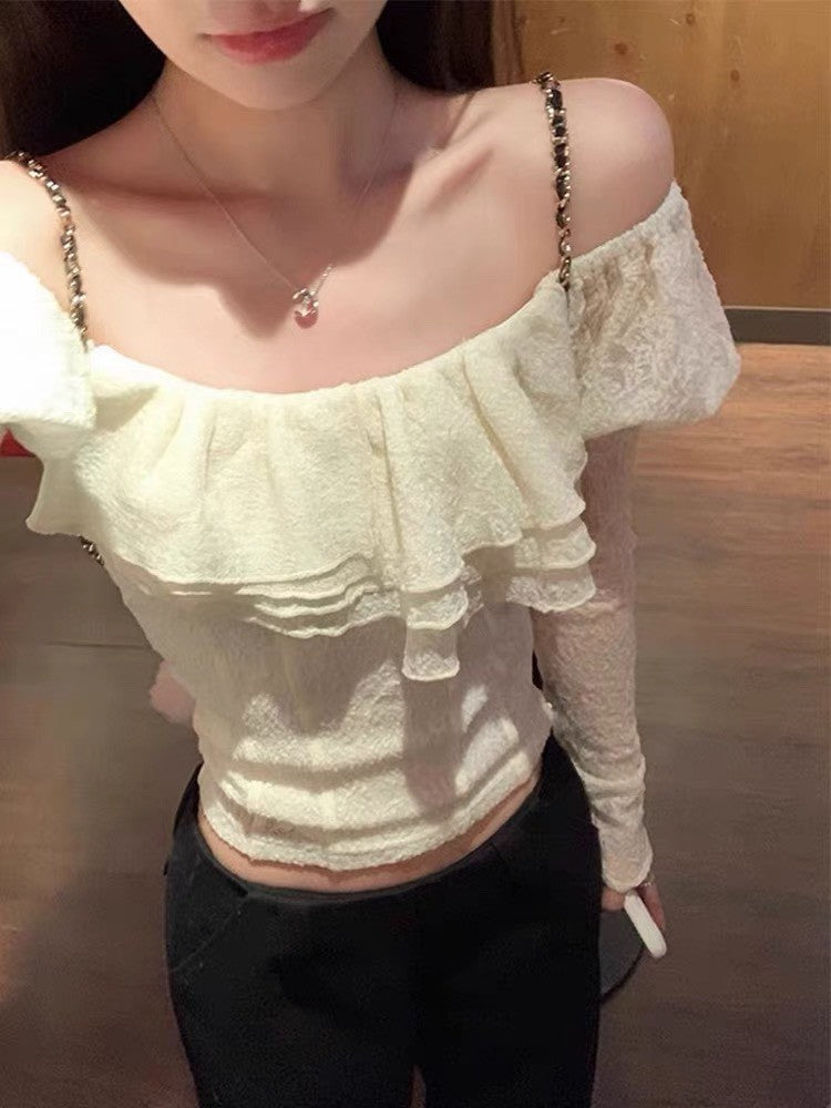 Fri. Vtg小香典藏一字荷葉領提花上衣 奶杏色