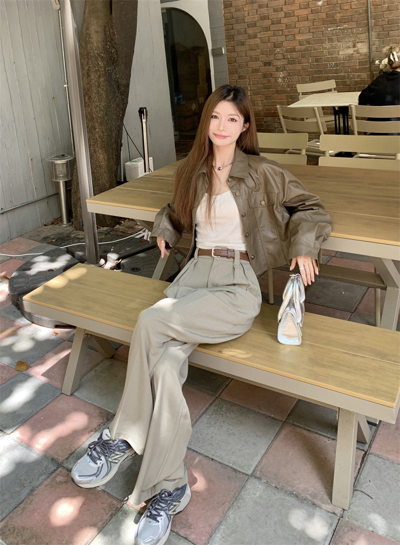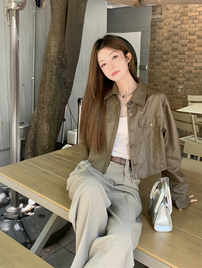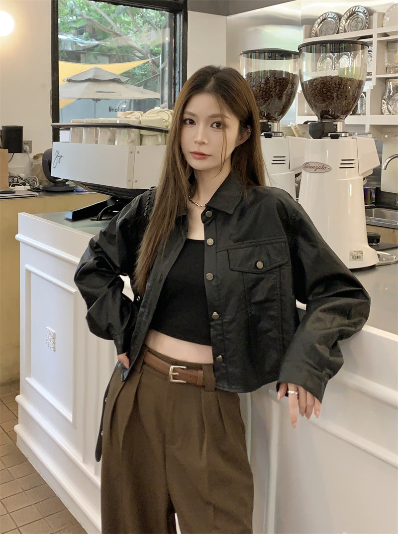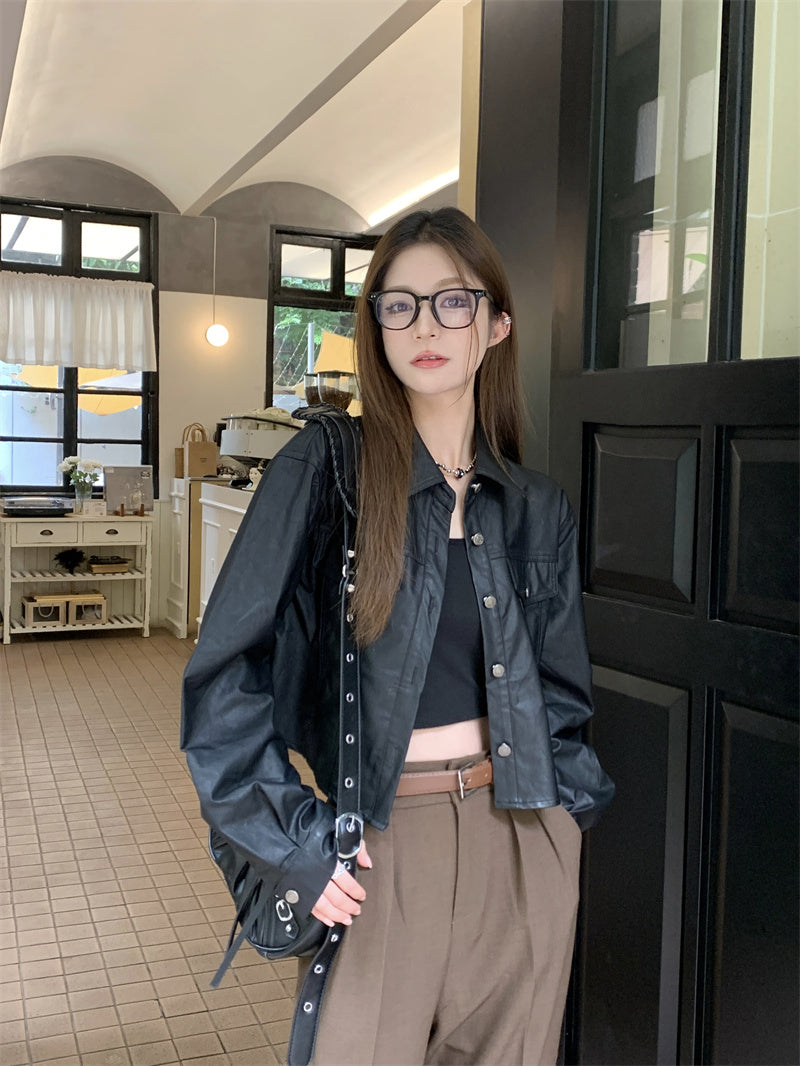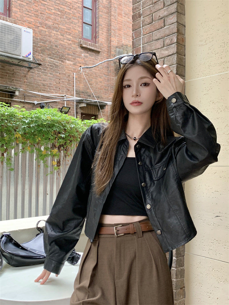 Mon. 今年必入短版皮襯衫外套 黑/咖