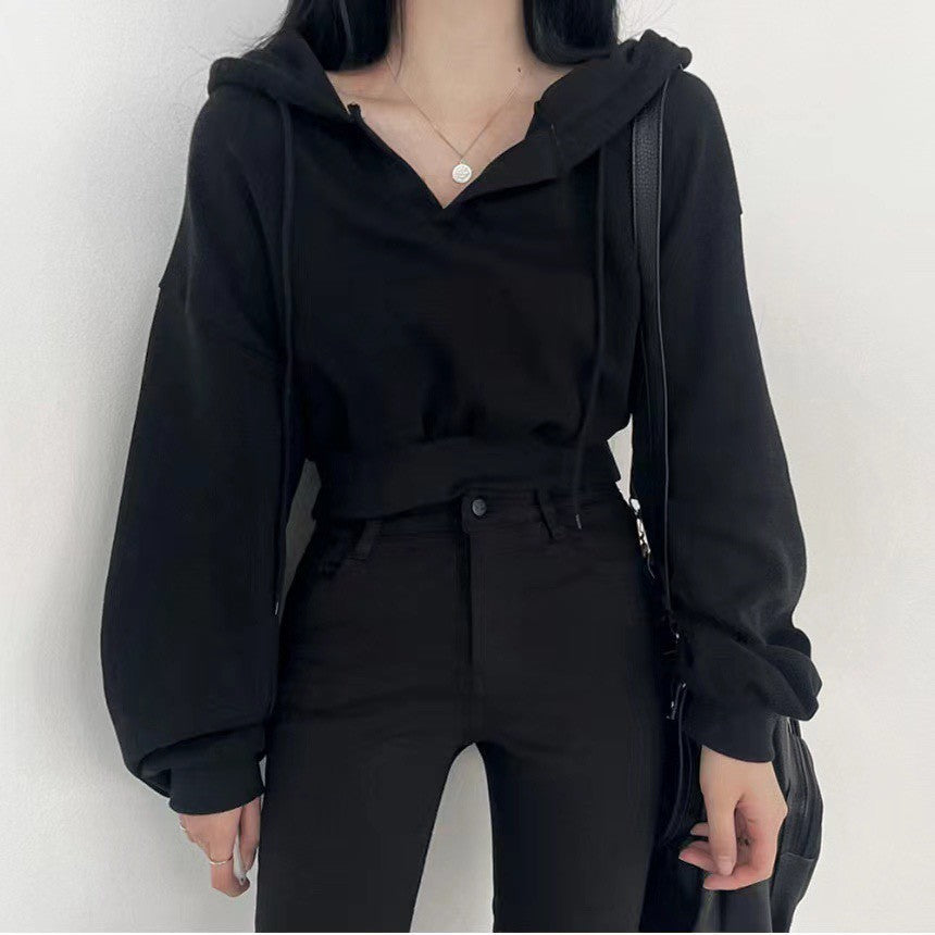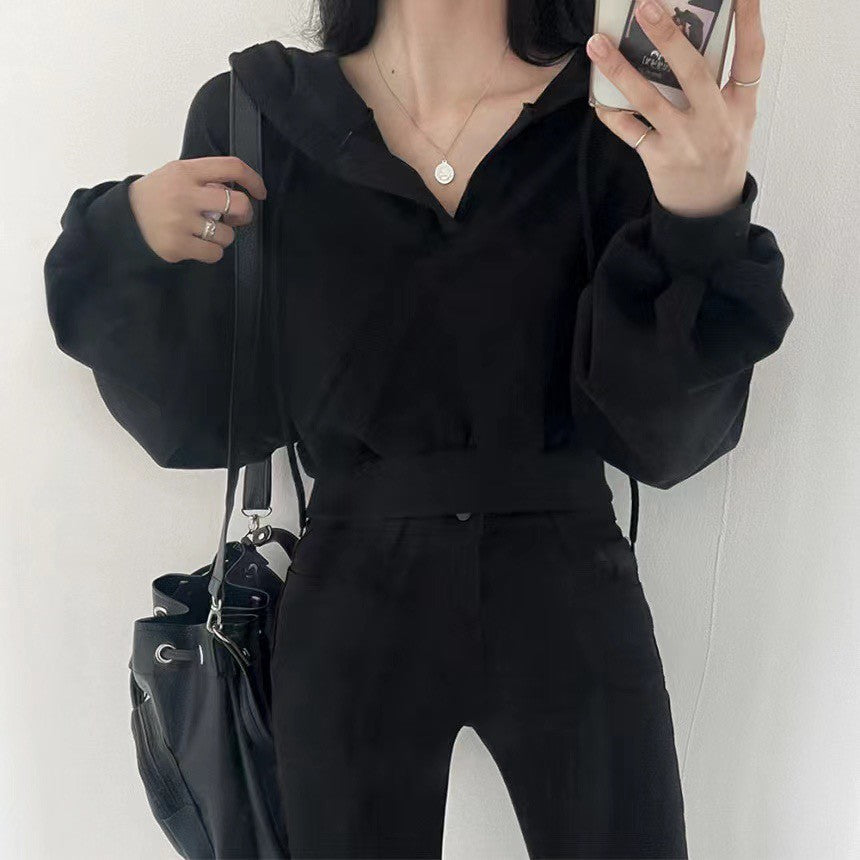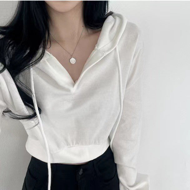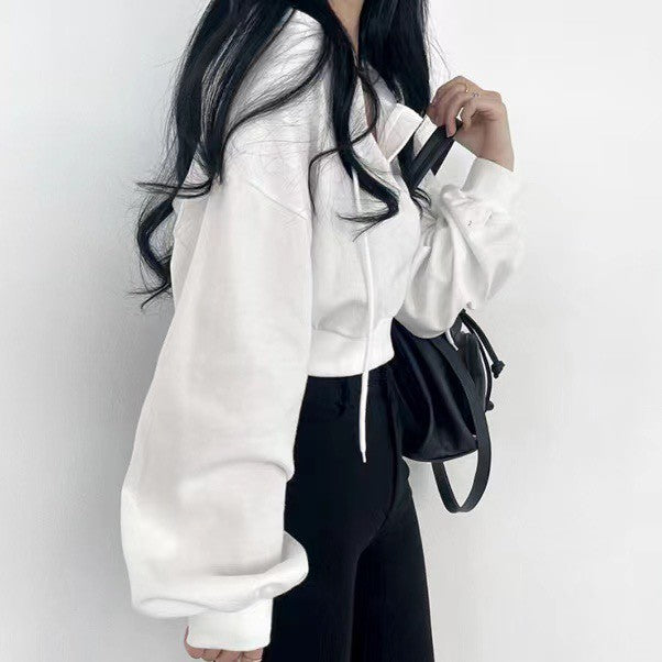 Mon. 元氣女孩百搭連帽短款上衣 白/黑(加購不單售)