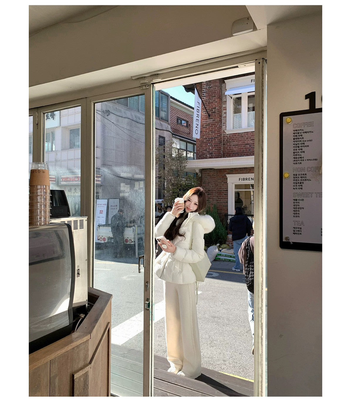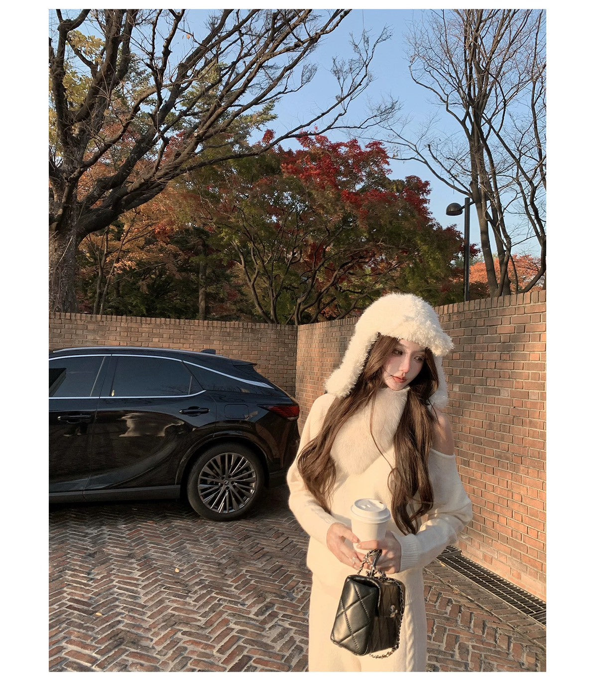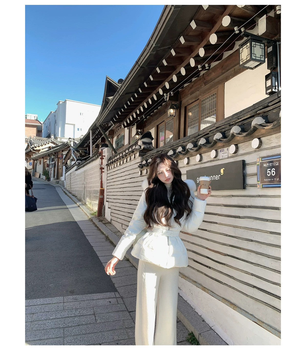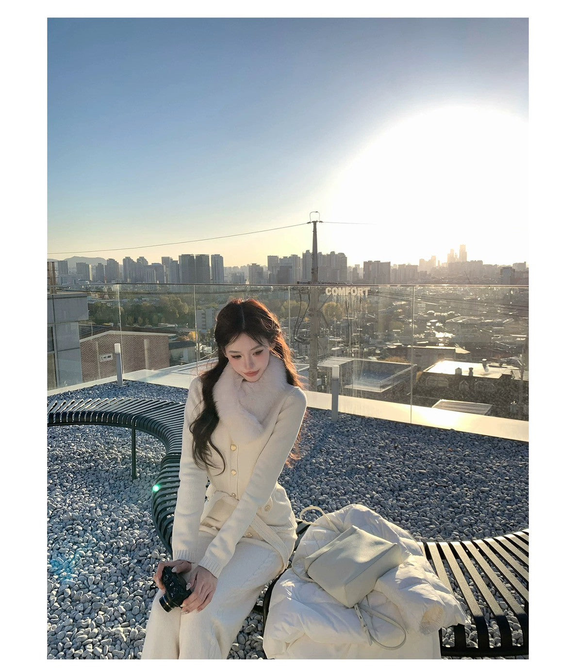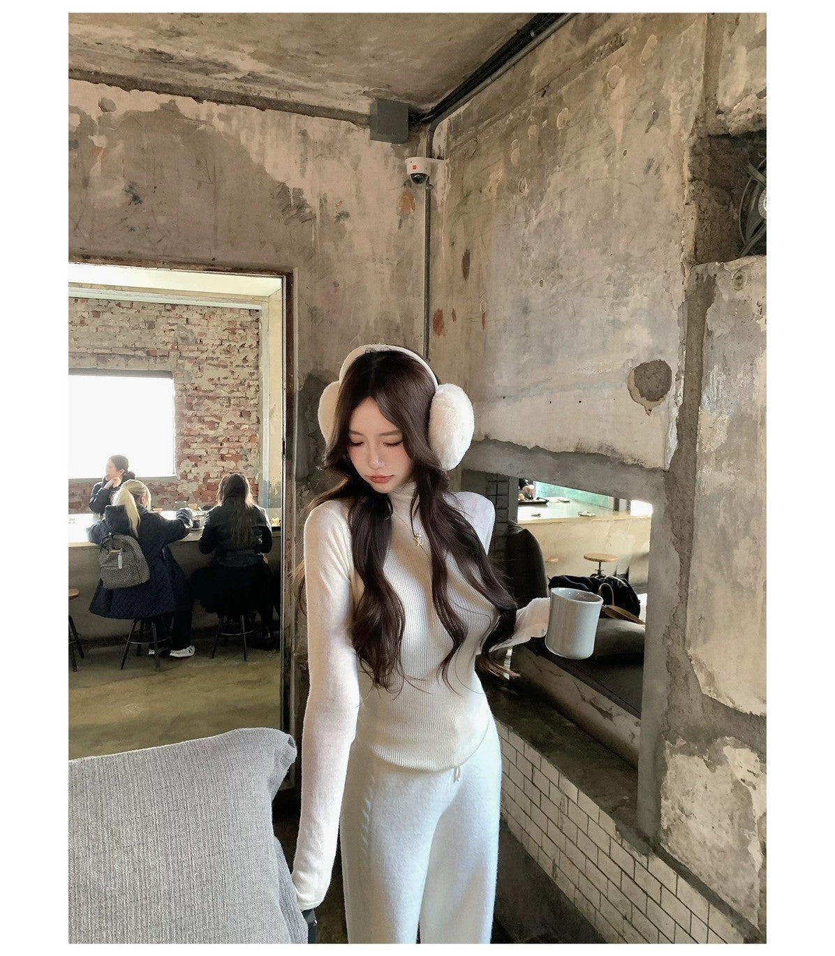 Mon. 元英白月光 韓女慵懶斜肩針織套裝 白