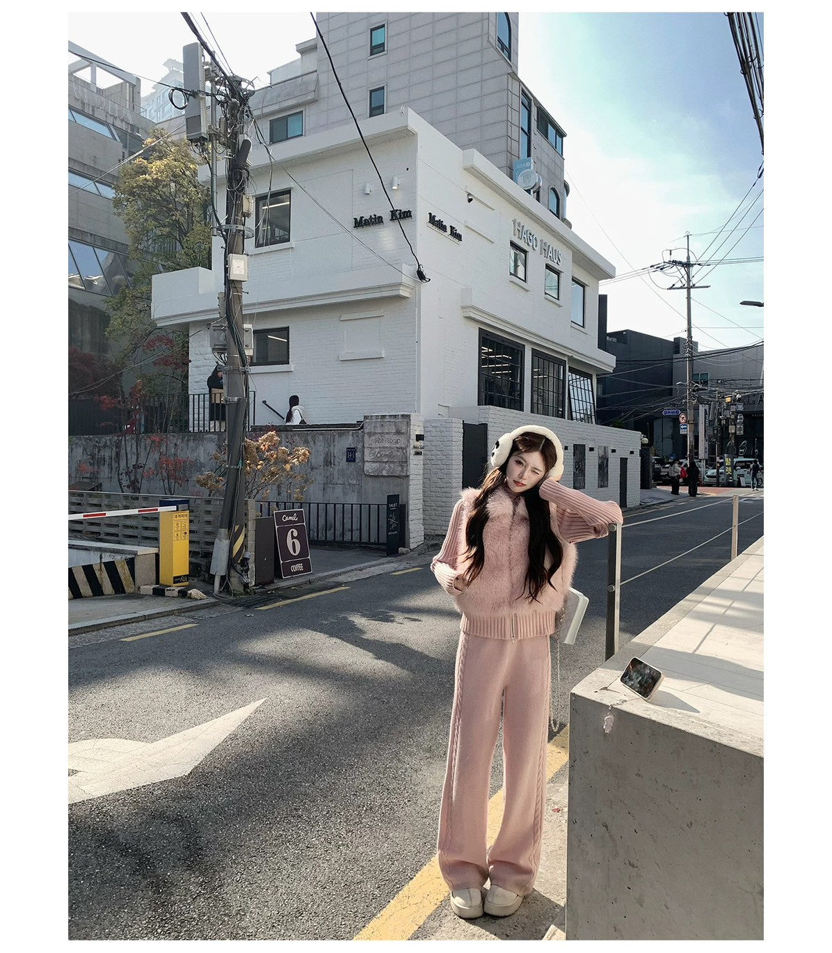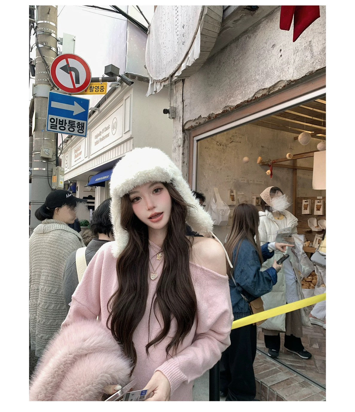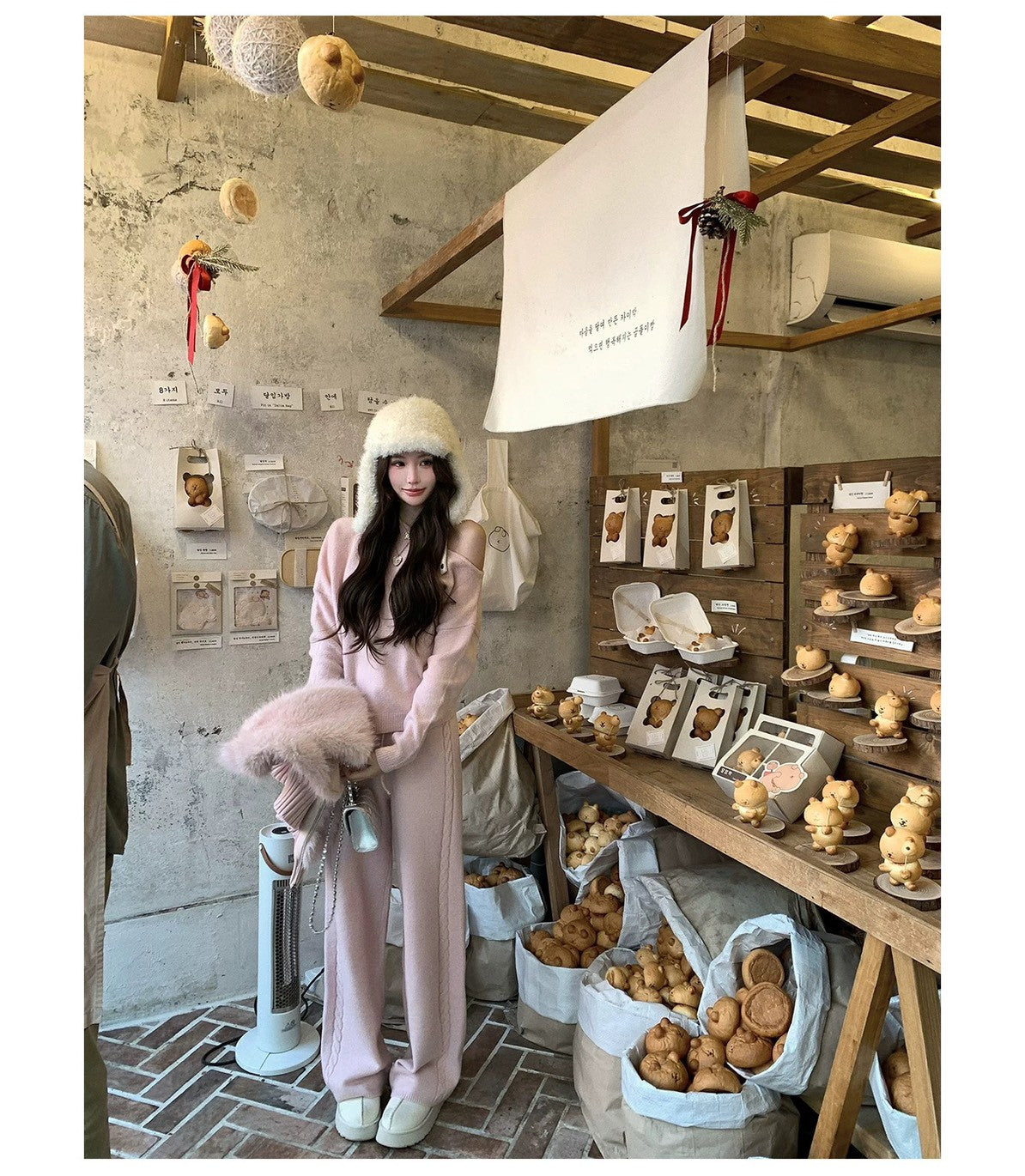 Mon. 元英白月光 韓女慵懶斜肩針織套裝 粉