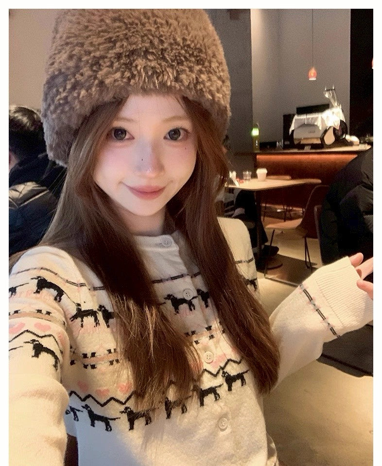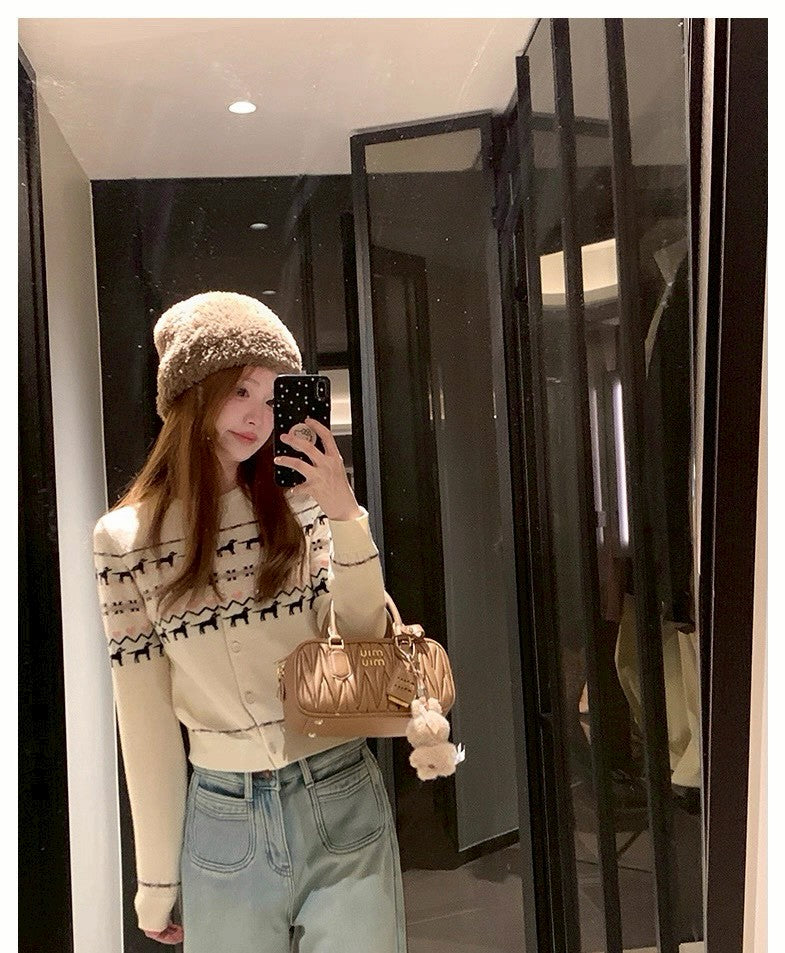 Mon. 北歐童話修勾刺花羊毛針織外套 白/黑