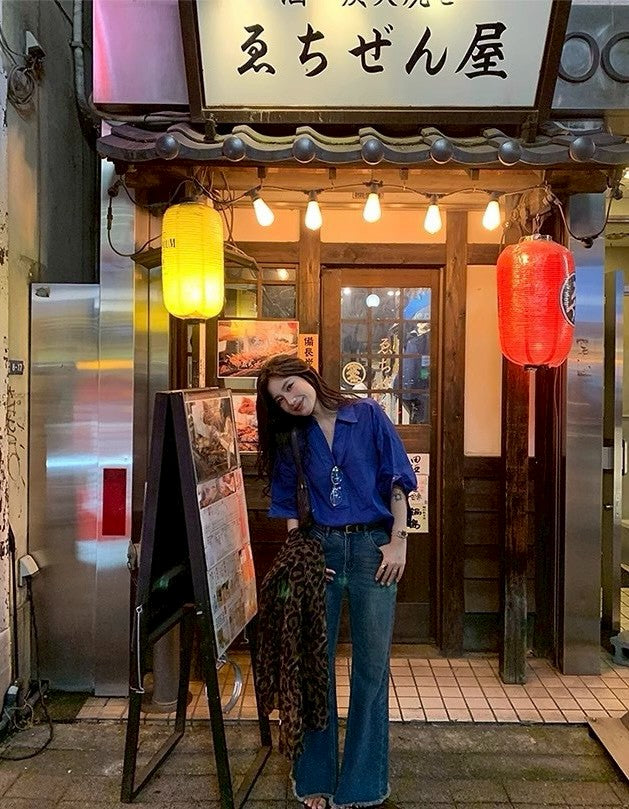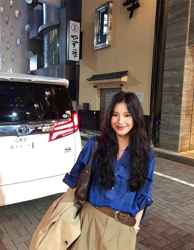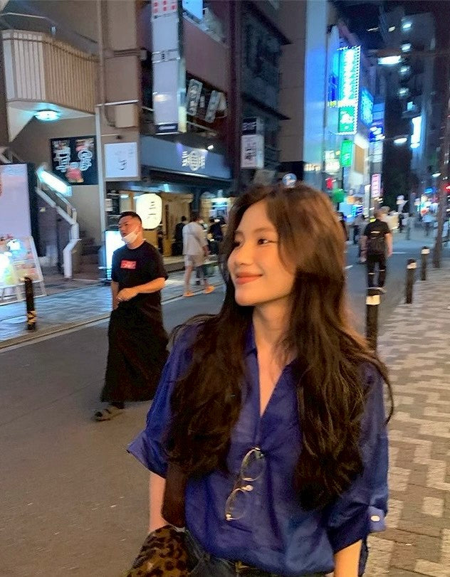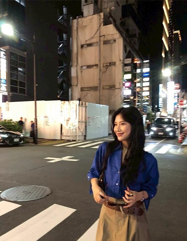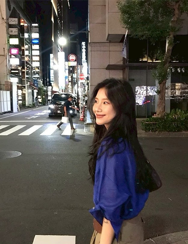 Mon. 寶石藍萾麻棉寬鬆慵懶襯衫