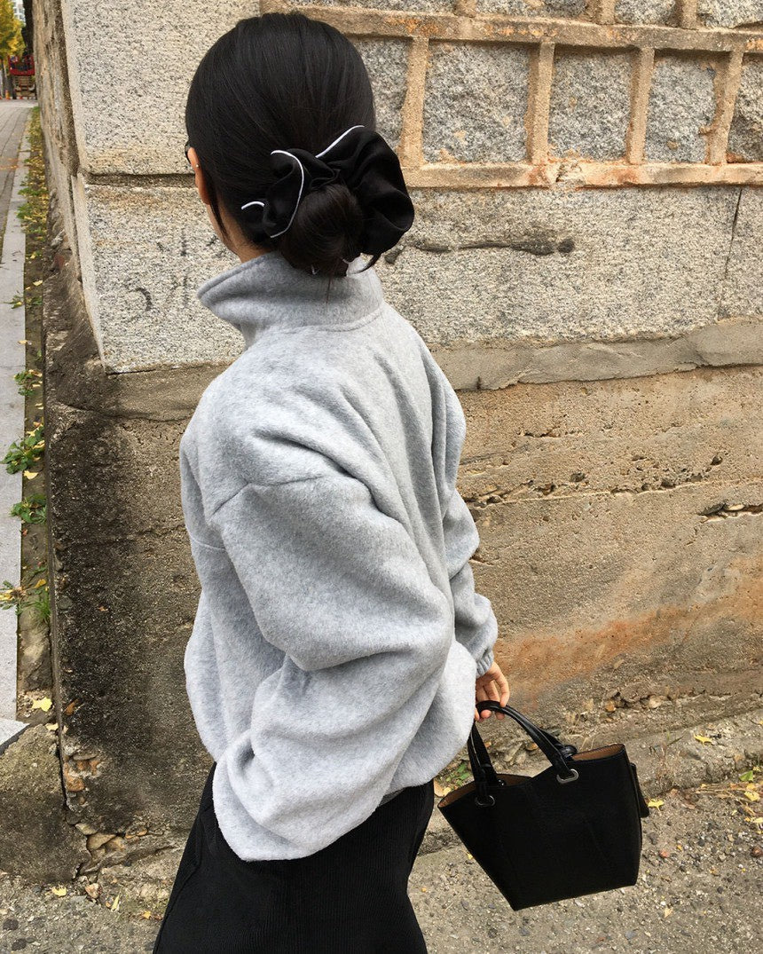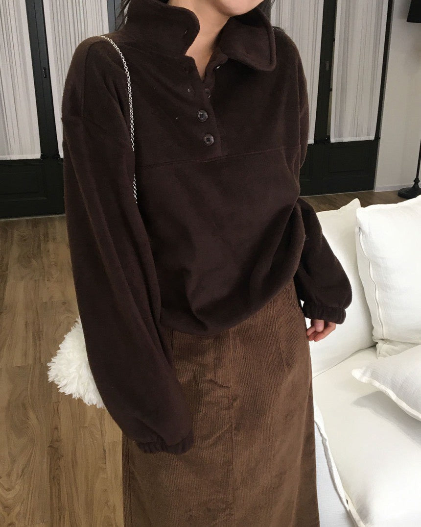 Mon. 日系氛圍鈕扣領慵懶長袖上衣 灰/咖