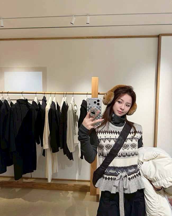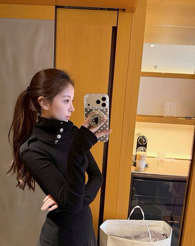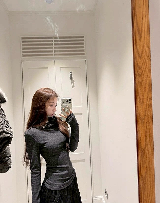 Mon. 時髦肩章高領打底針織衫 灰/黑