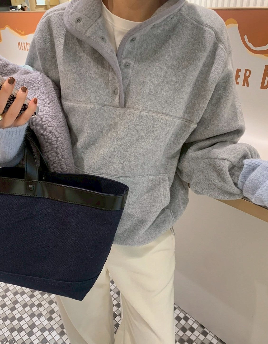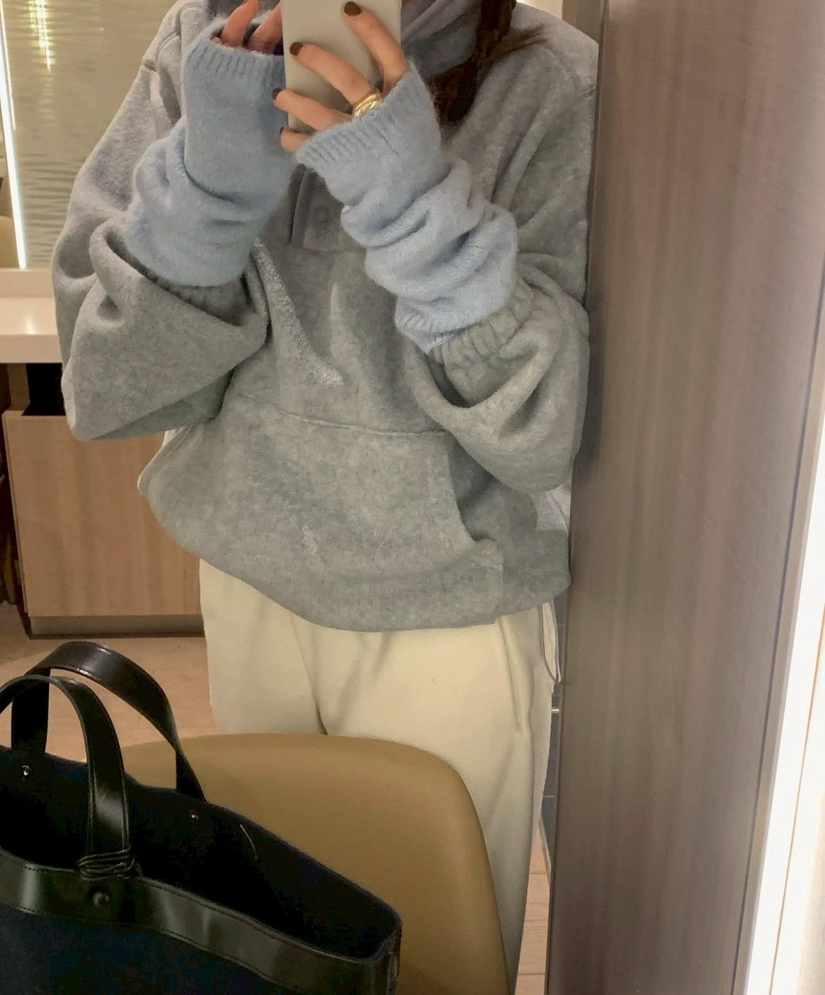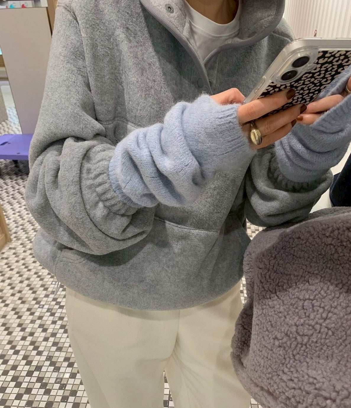 Mon. 暖呼羊羔毛立領保暖衛衣 淺灰/深灰
