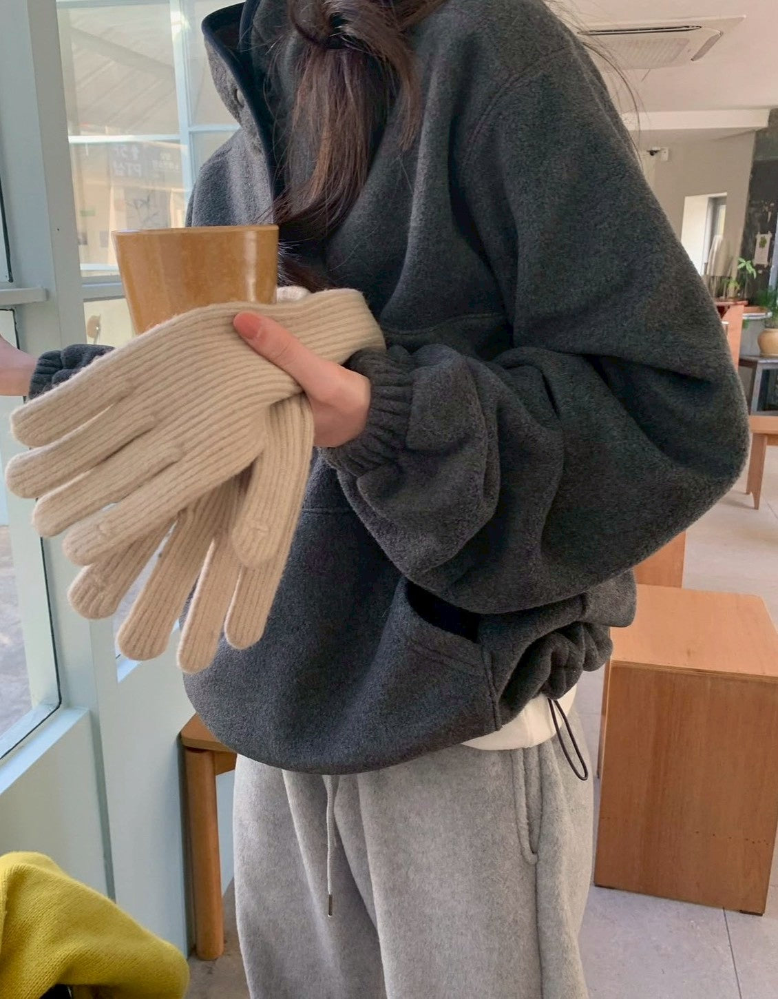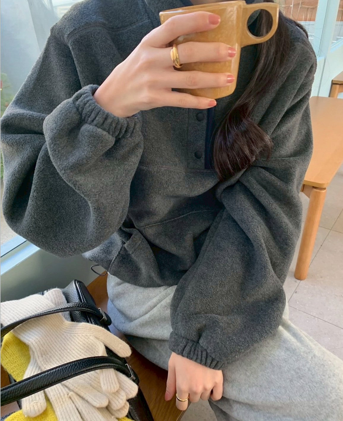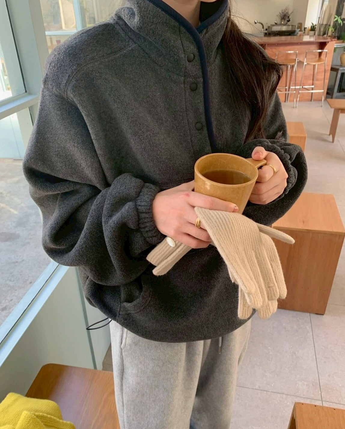 Mon. 暖呼羊羔毛立領保暖衛衣 淺灰/深灰