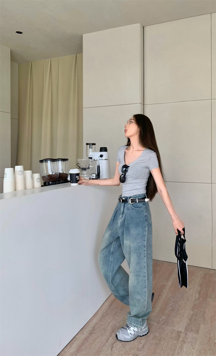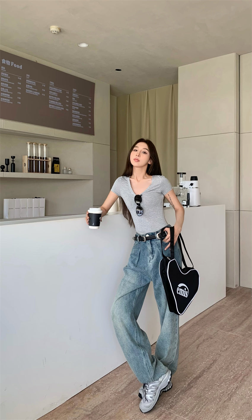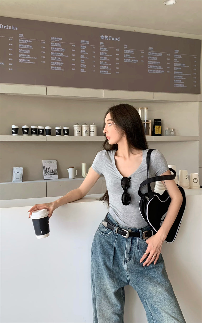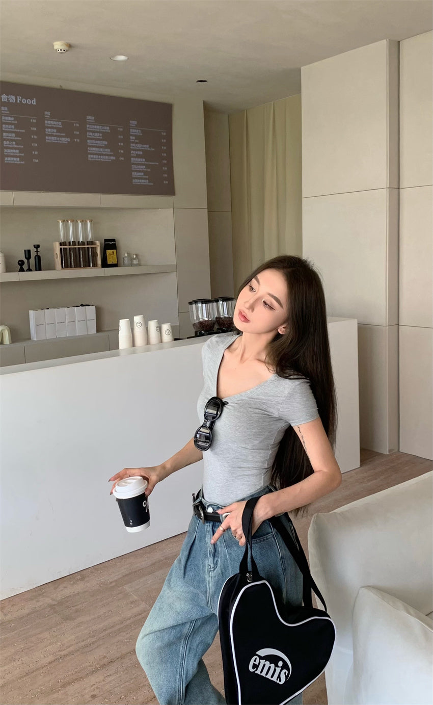 Mon. 正肩百搭打底彈力T 灰 (兩種領口)