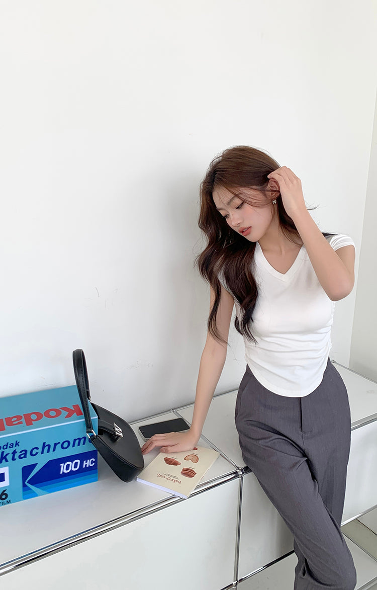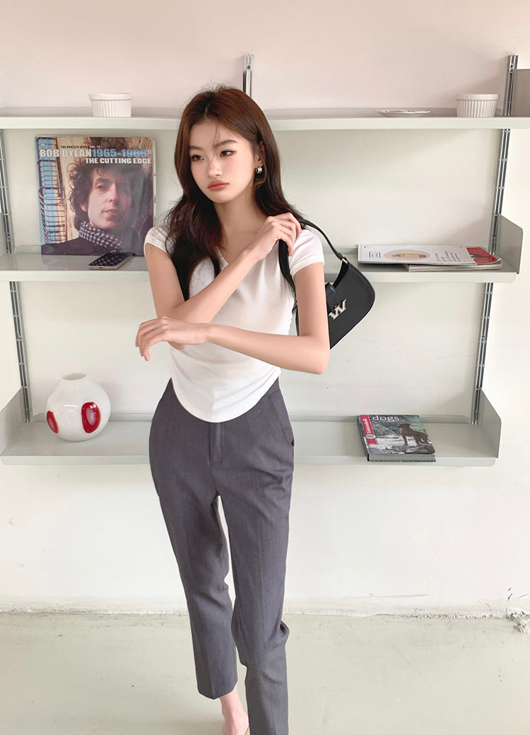 Mon. 氣質顯瘦OL九分休閒褲 灰