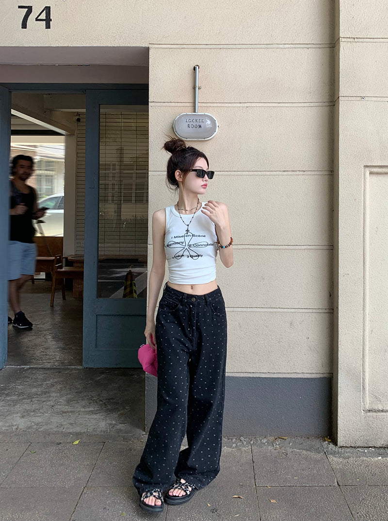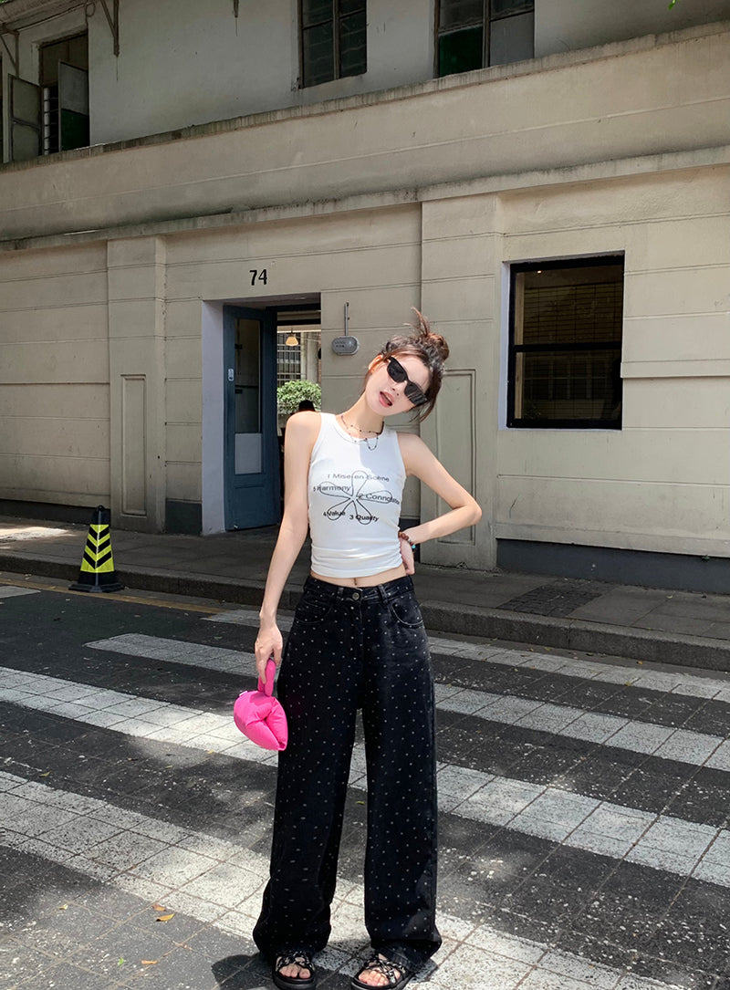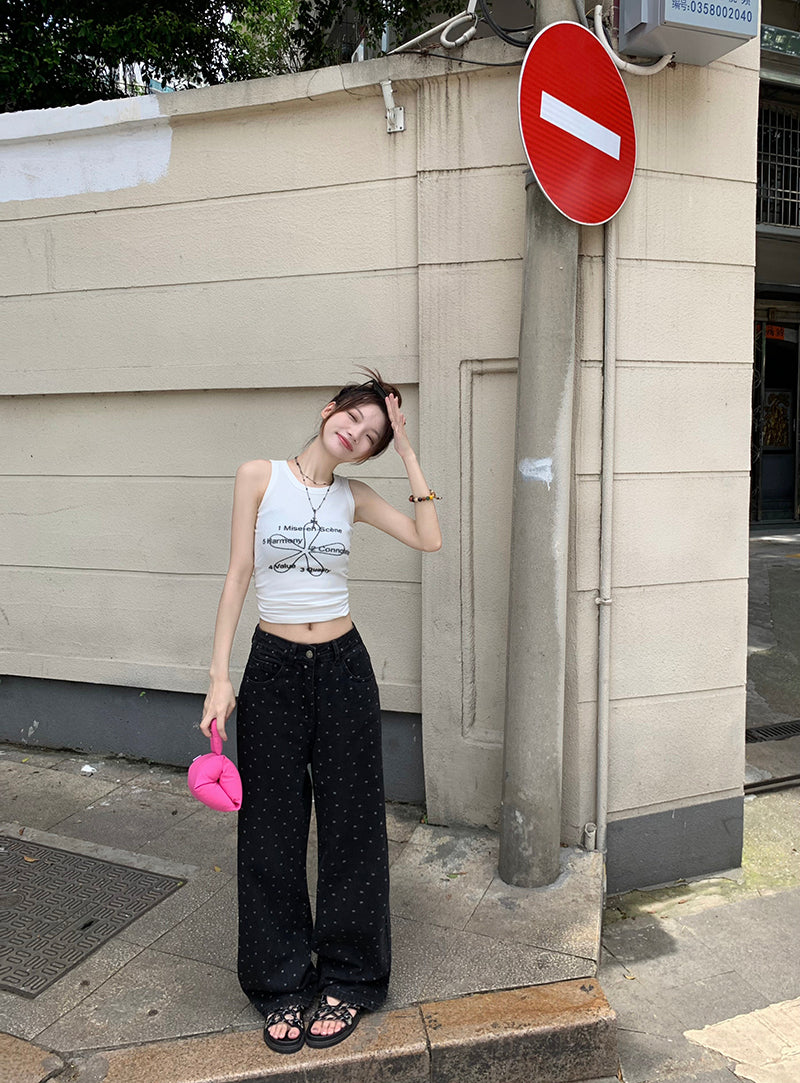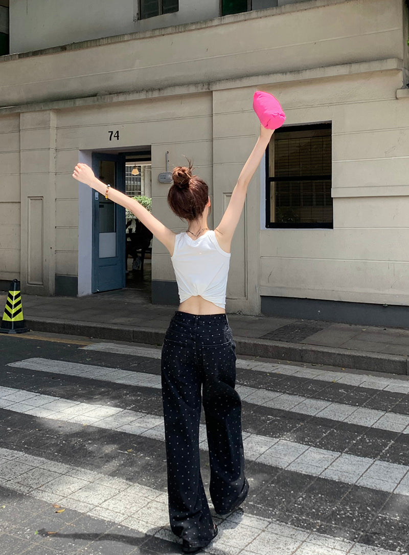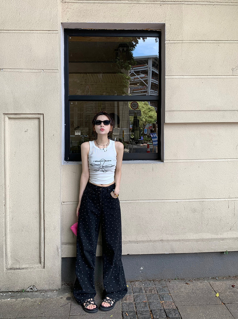 Mon. 波點牛仔寬褲 黑 新色