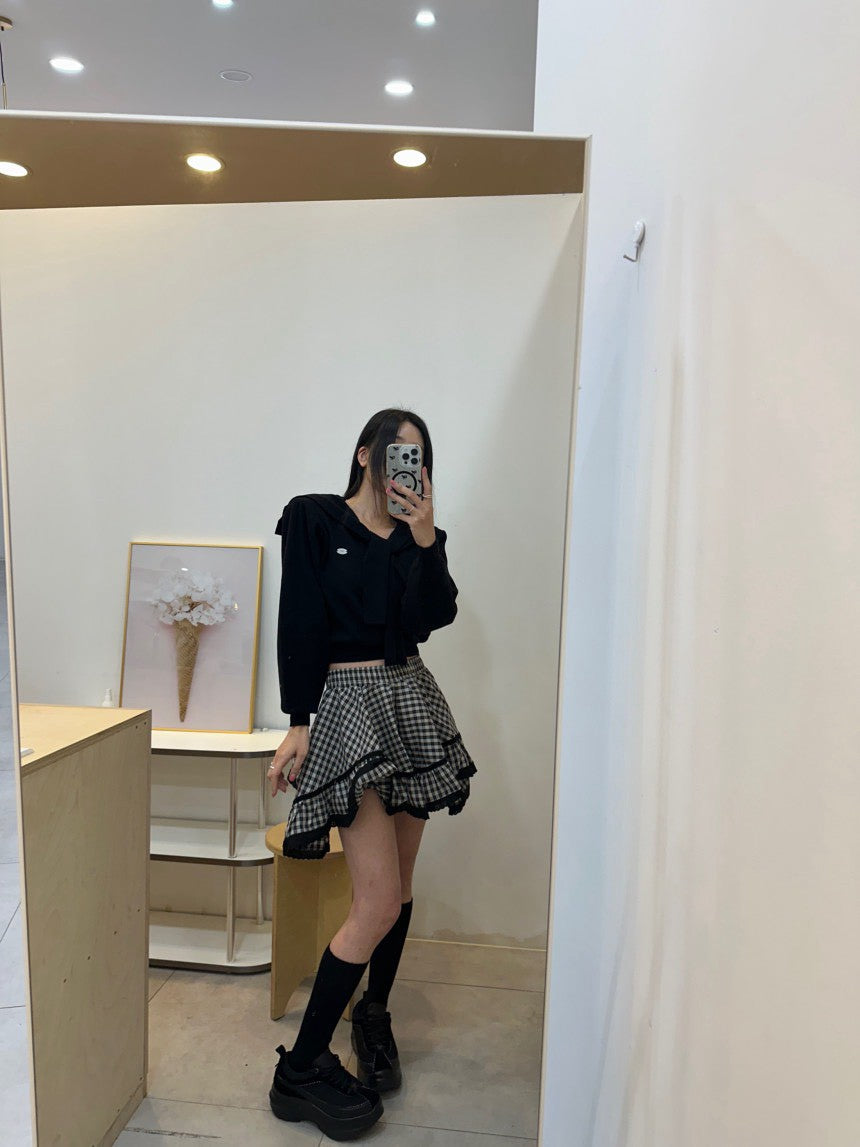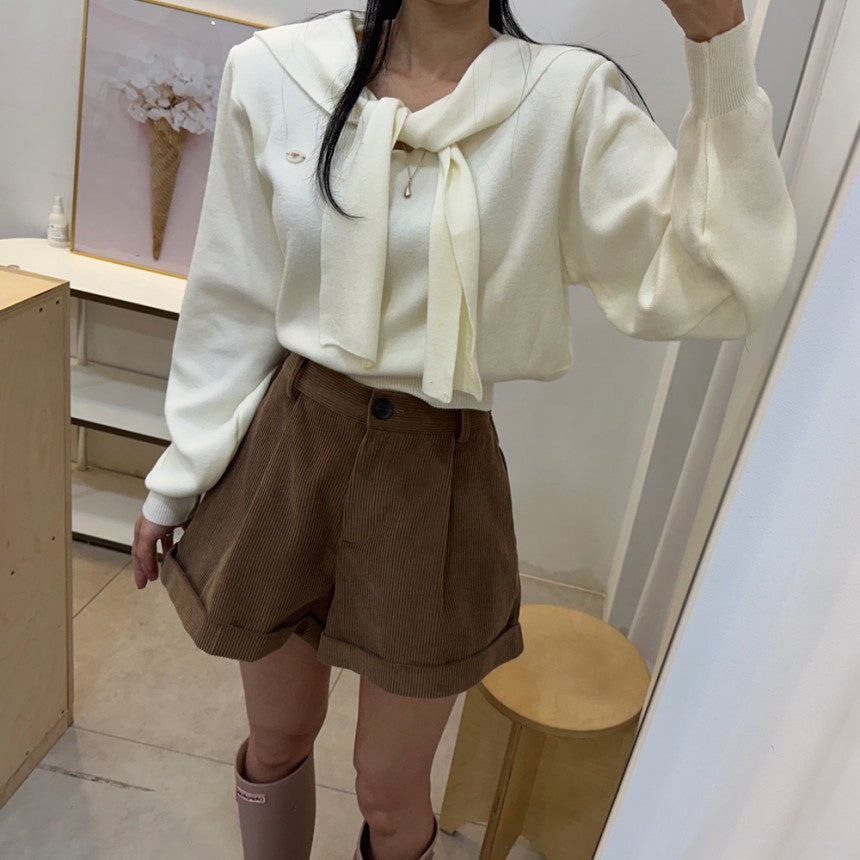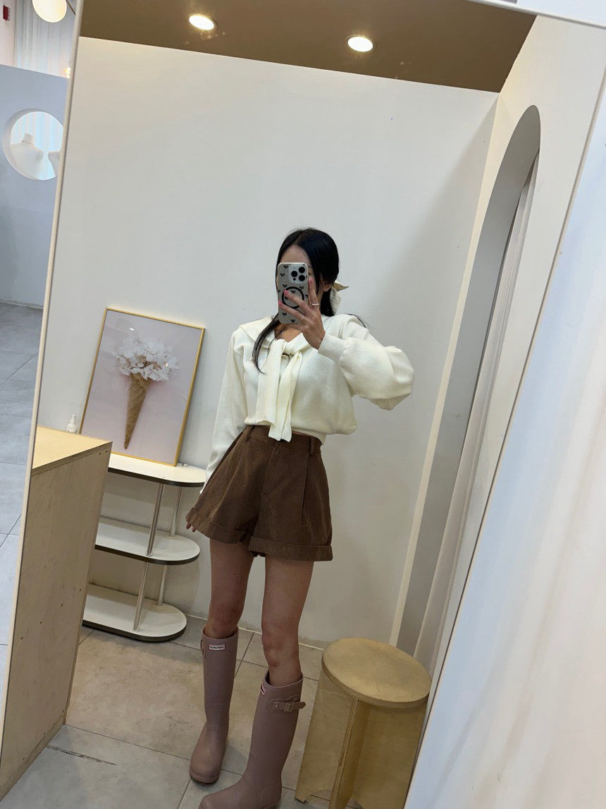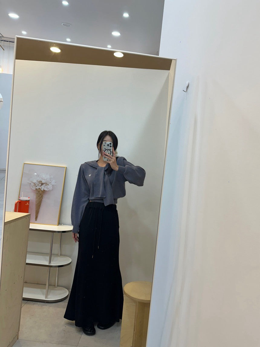 Mon. 減齡海軍領飄帶短款長袖上衣 米/藍/灰/黑
