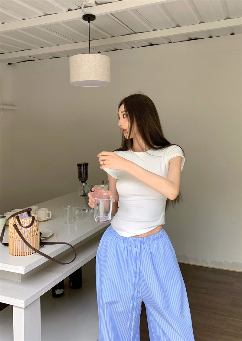 Mon. 白開水系 百搭條紋休閒褲