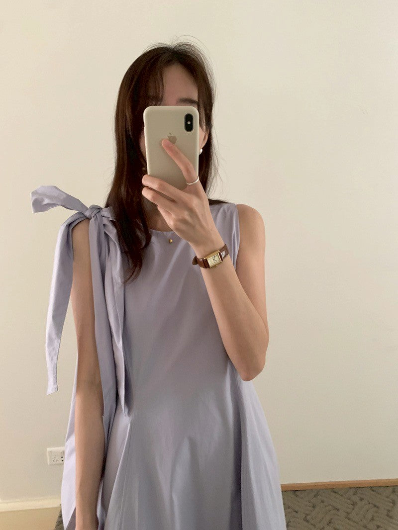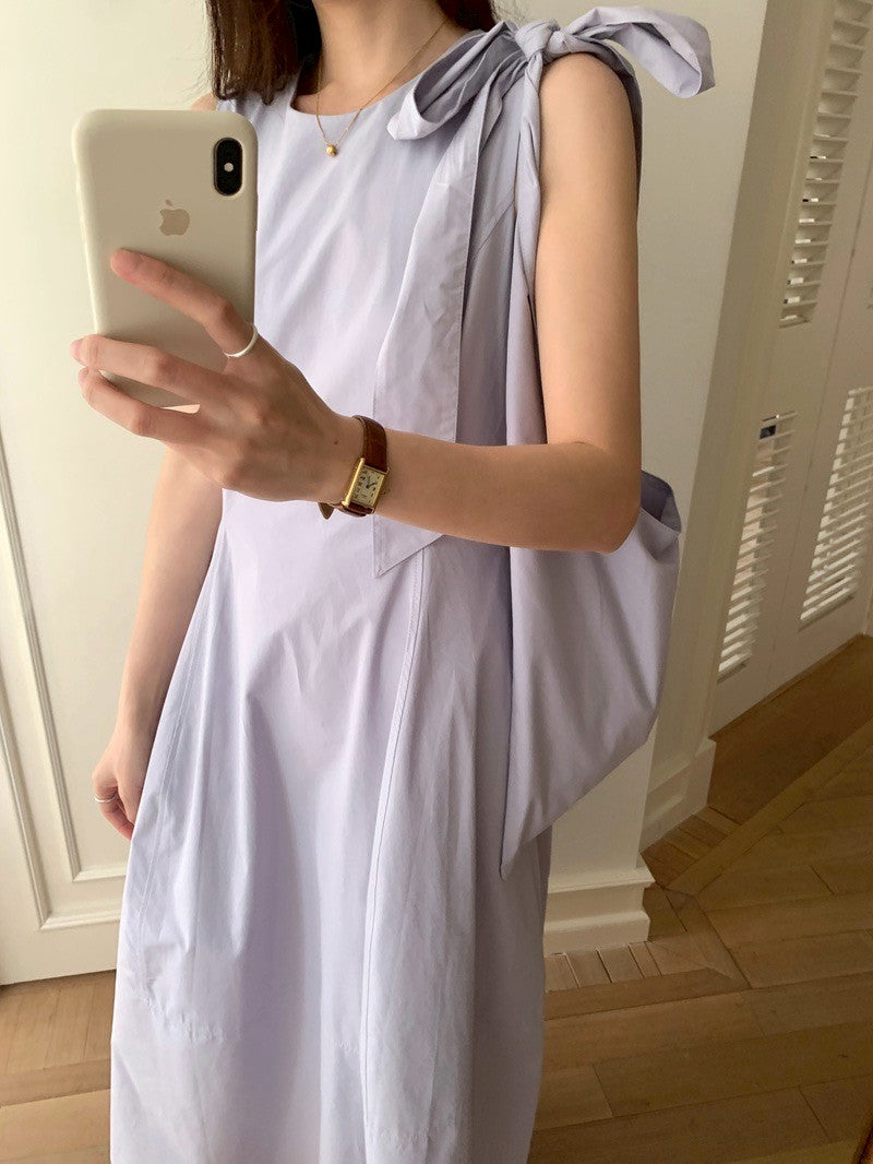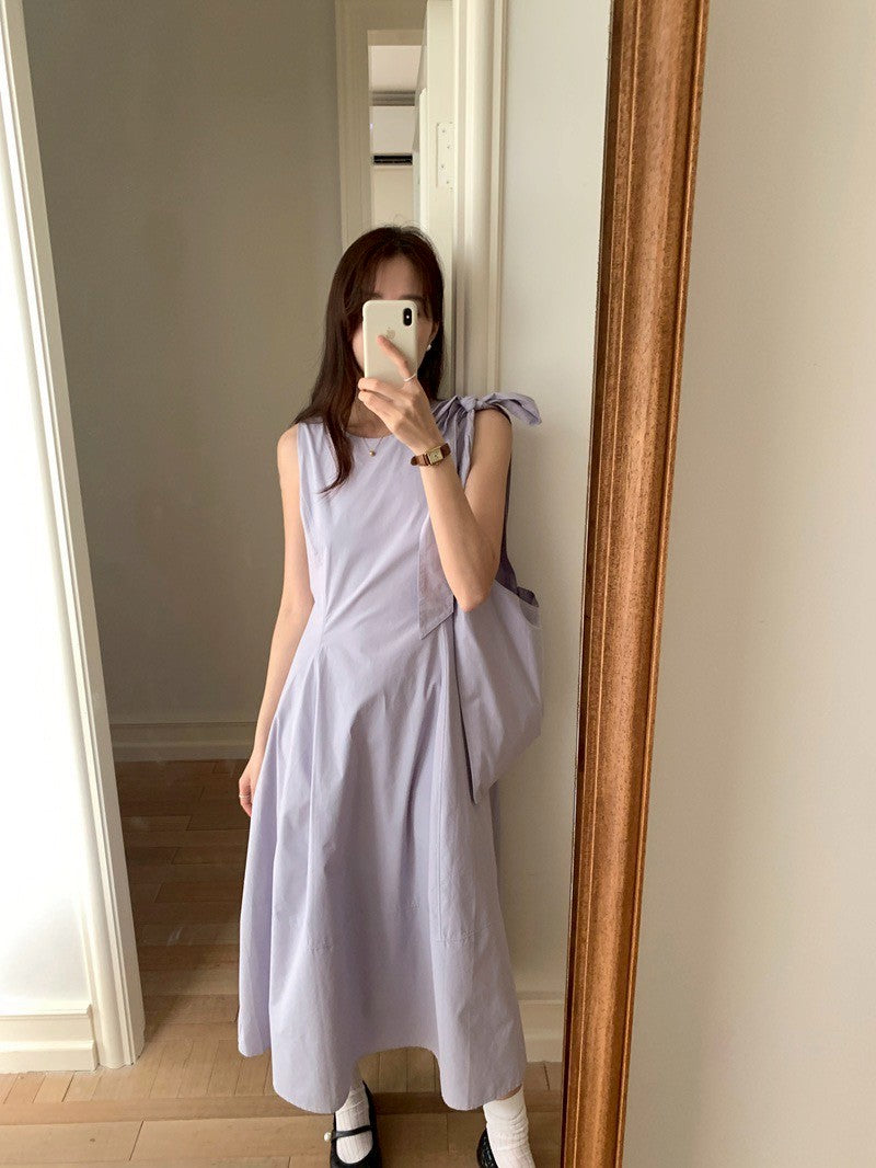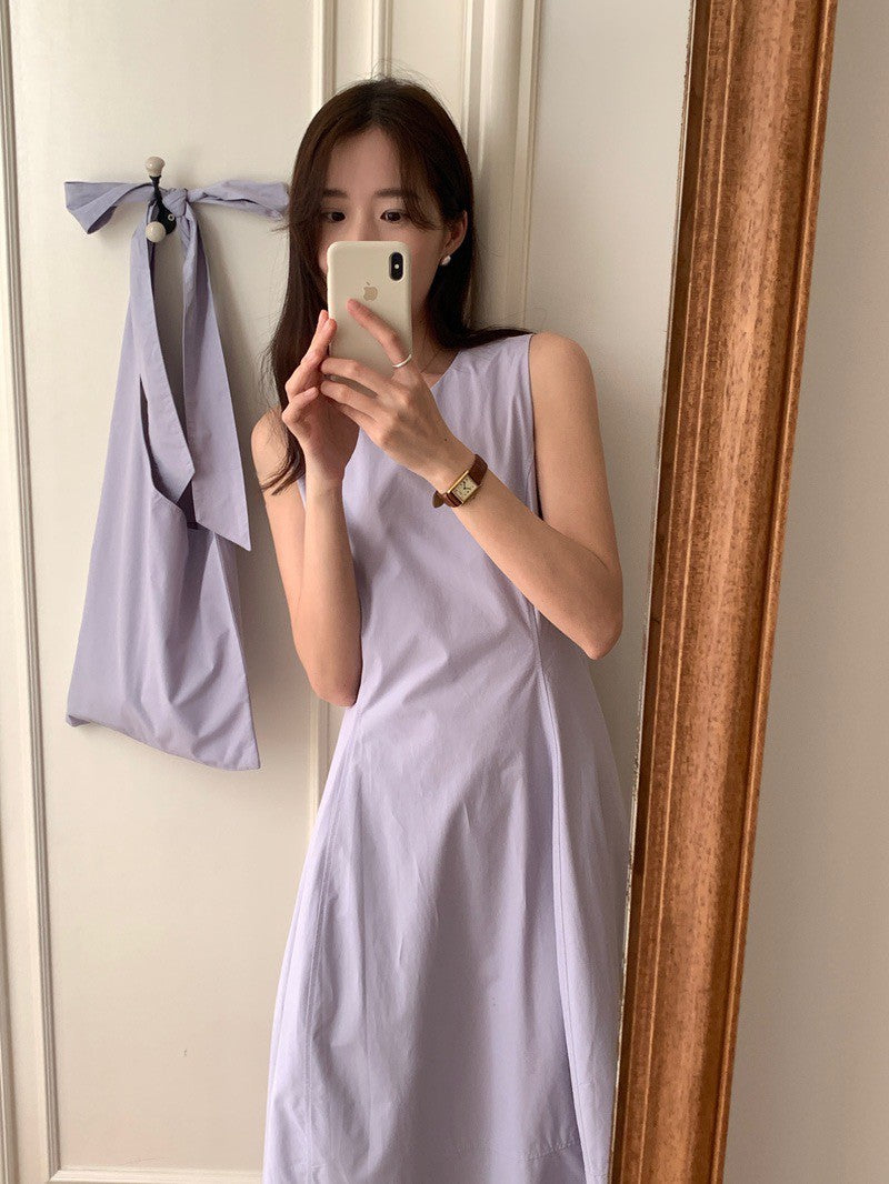 Mon. 立體剪裁襯衫布高級背心裙(配包包)紫