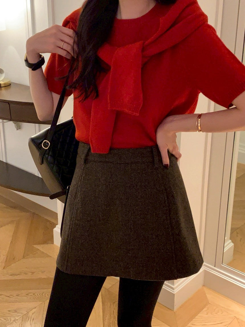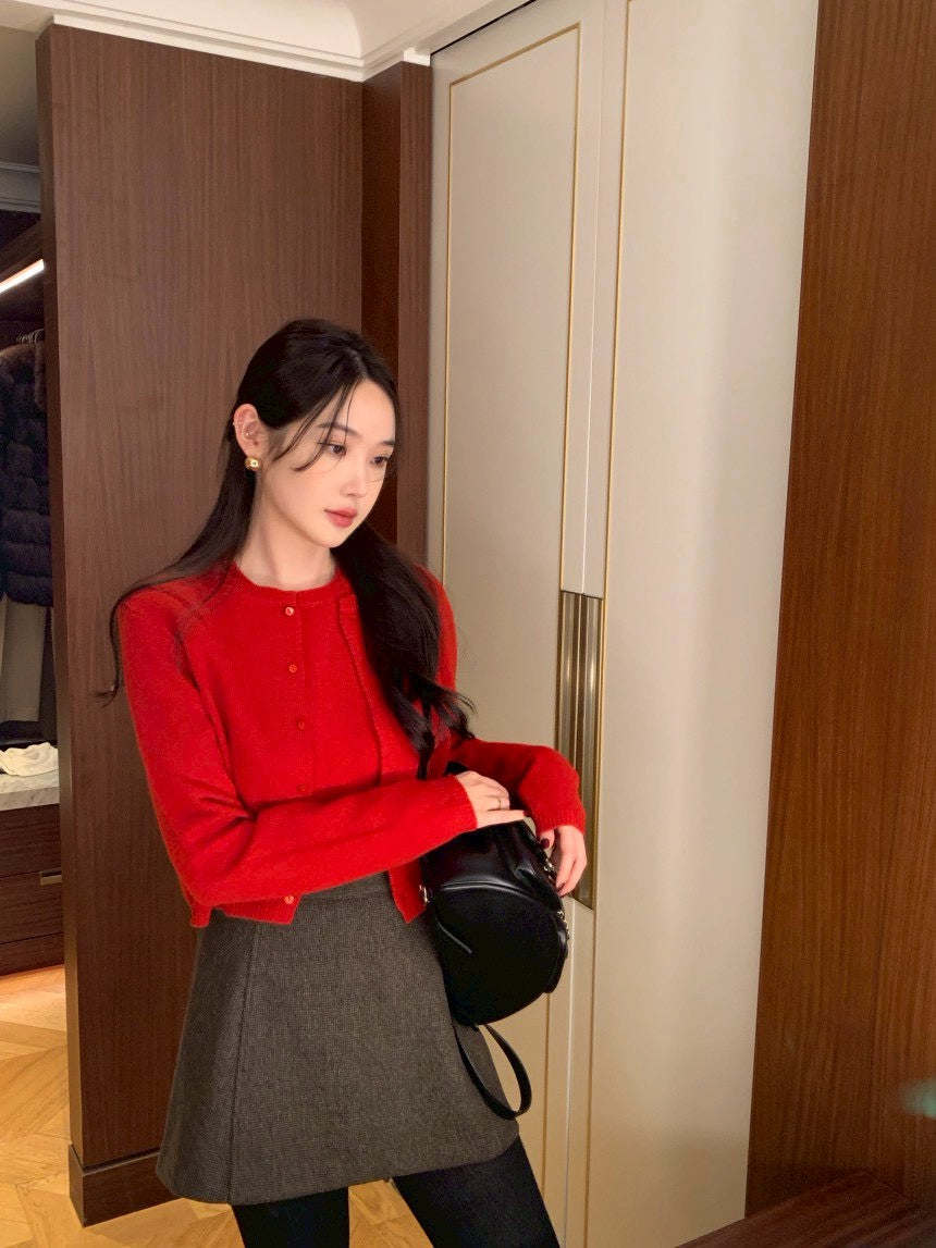 Mon. 童話書通勤百搭針織上衣外套2件組 紅/黑