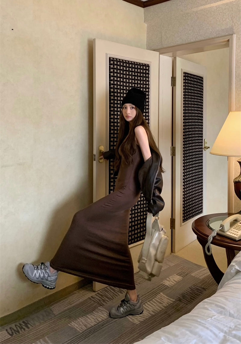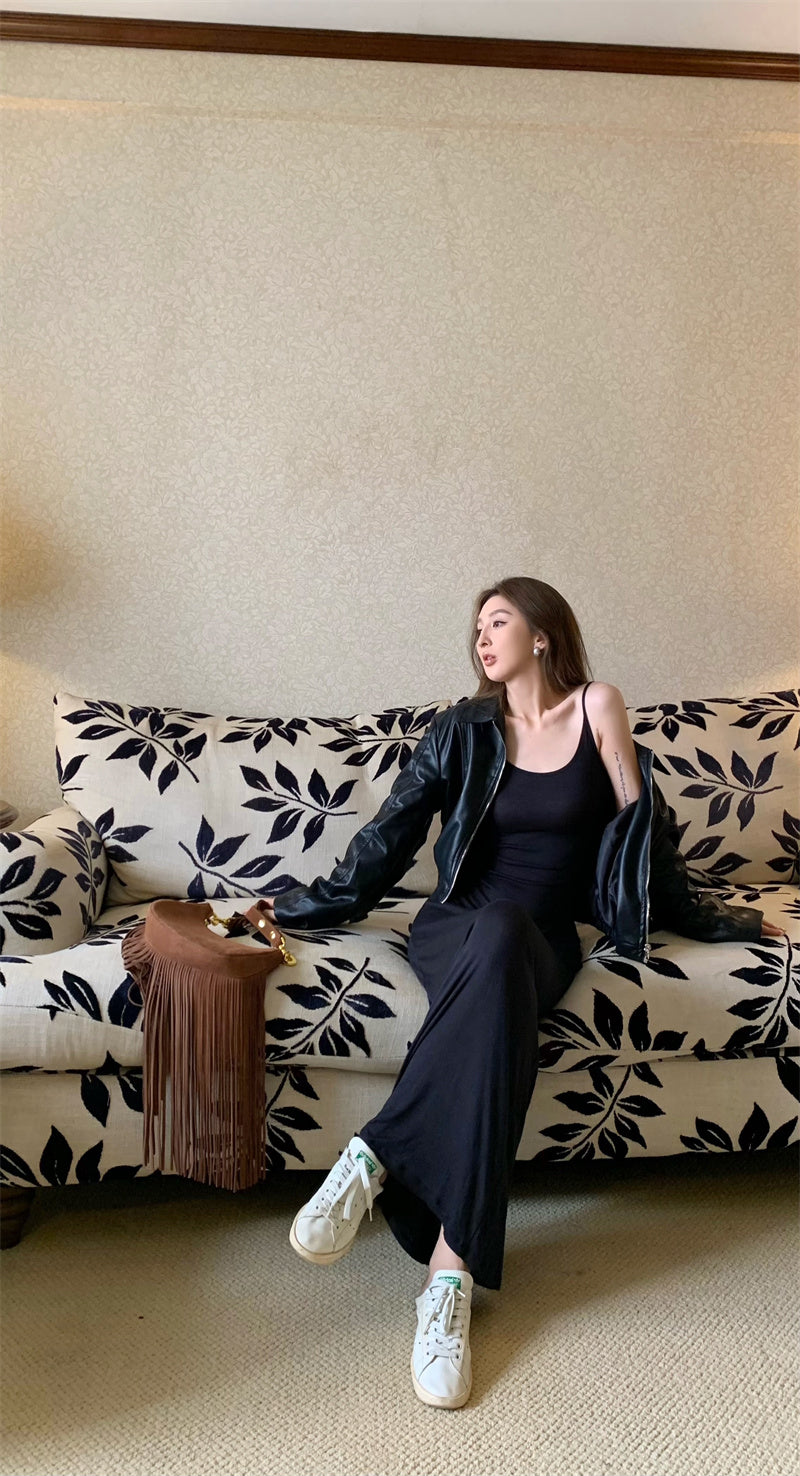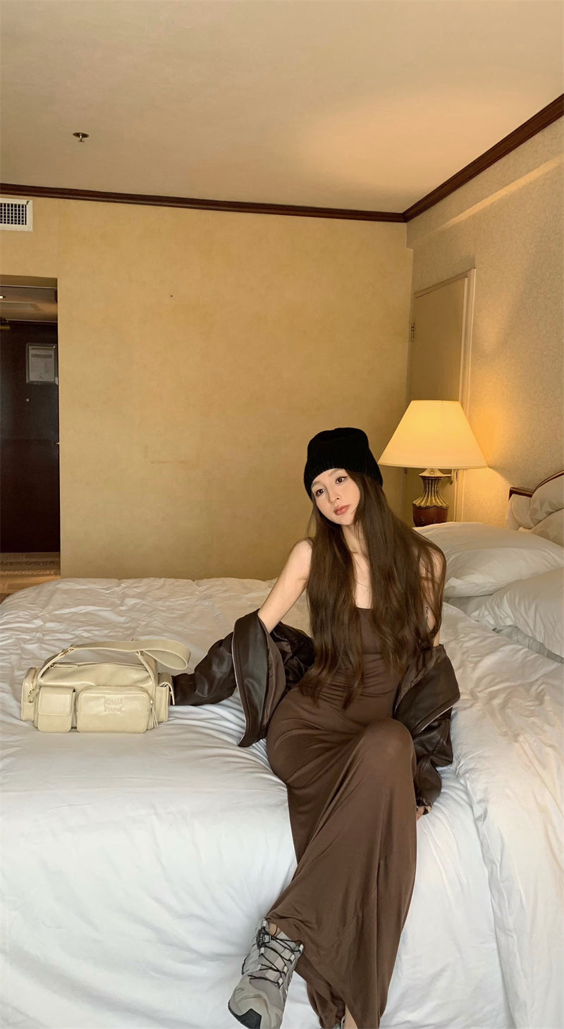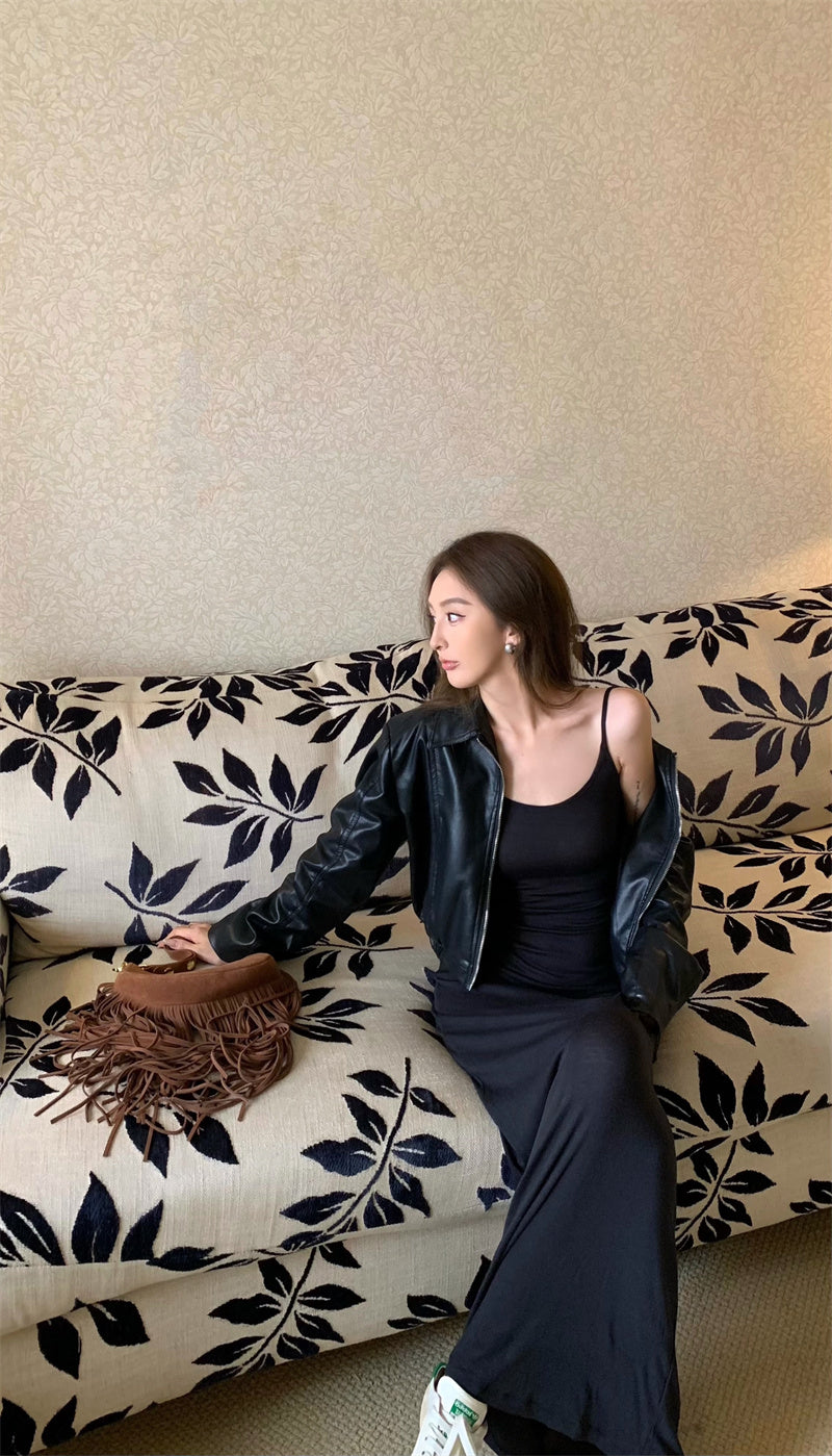 Mon. 細肩透視感連身長裙/短版皮外套 2色