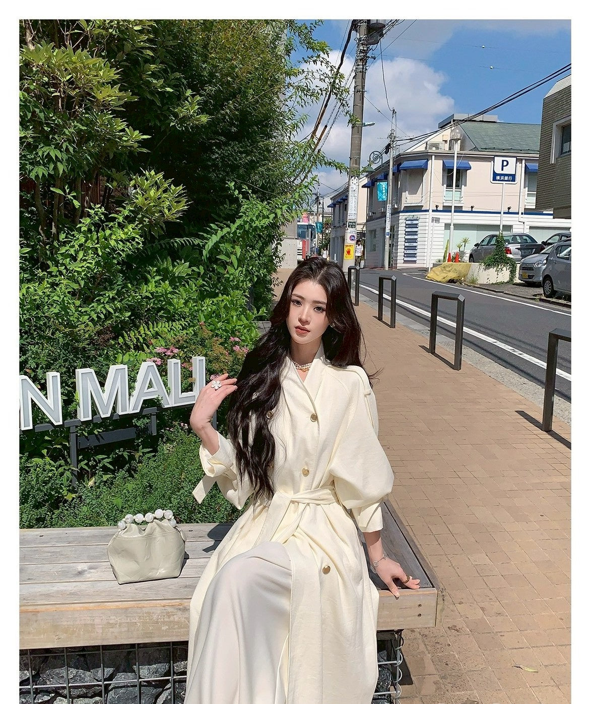 Mon. 諾丁山秋冬雙排扣混紡風衣 玉白/深卡其