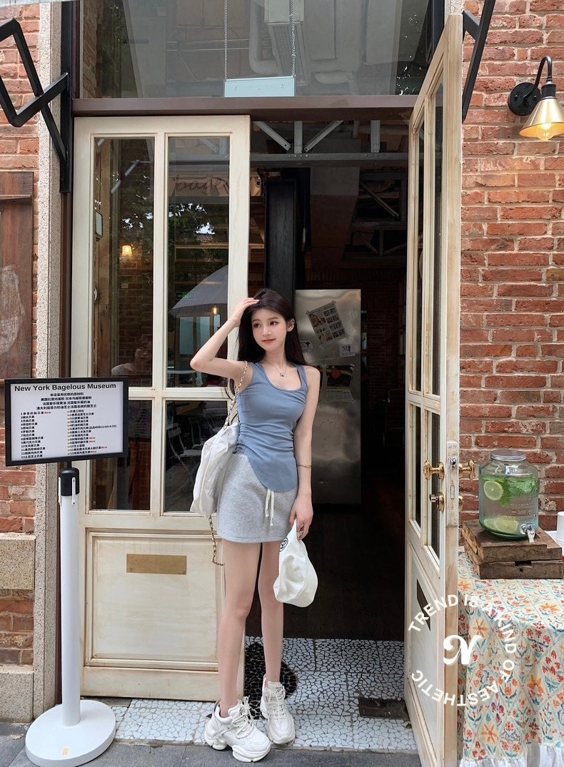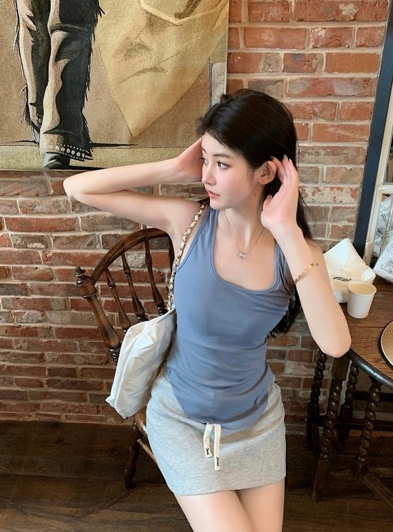Mon. U領螺紋圓弧背心 霧霾藍