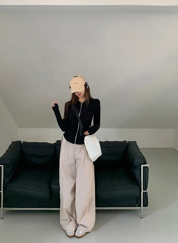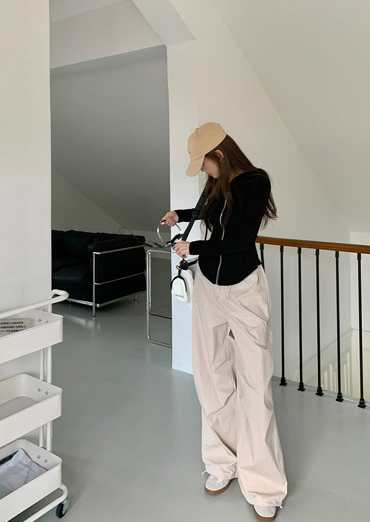Sat. 美式修身連帽外套 黑 & 慵懶杏色工作褲
