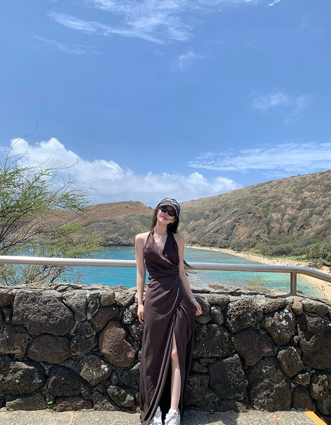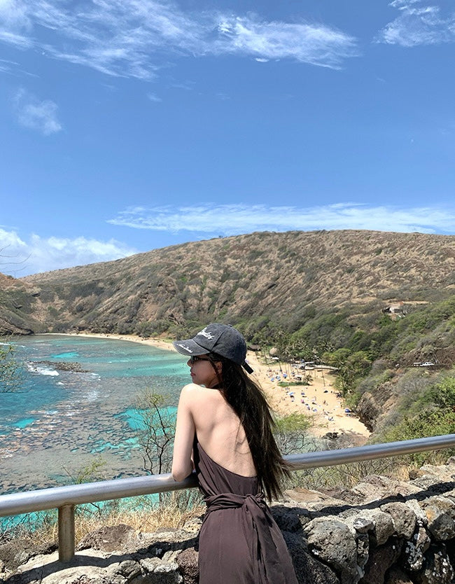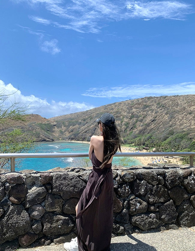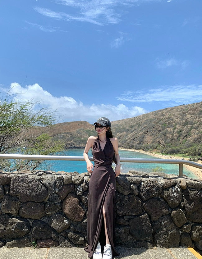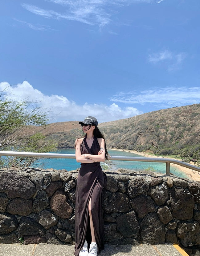 Sun. 夏威夷摯愛 度假收腰V領開叉連身洋裝