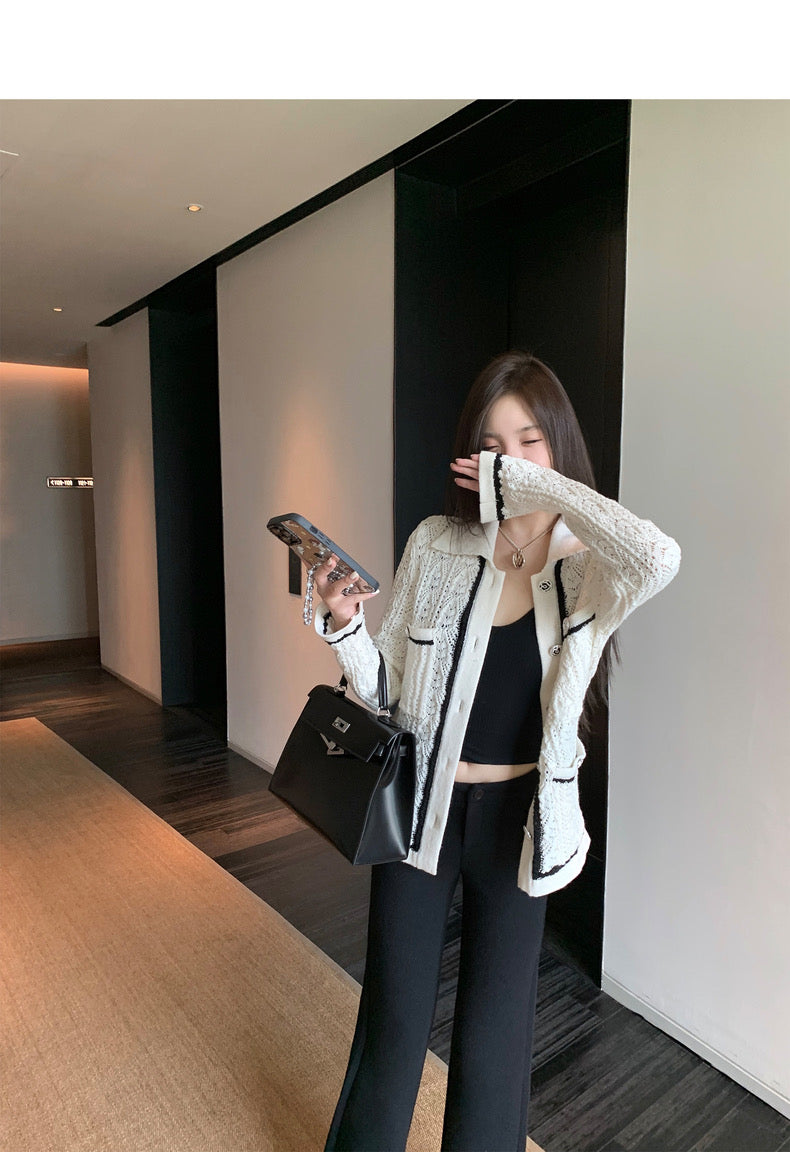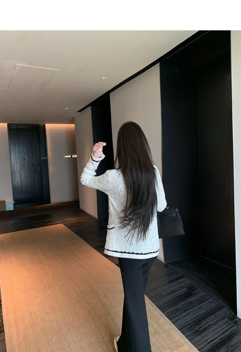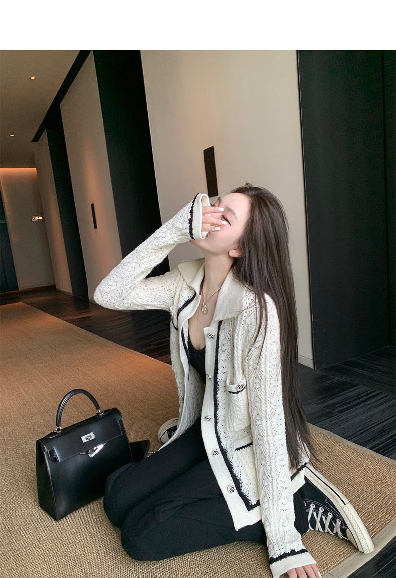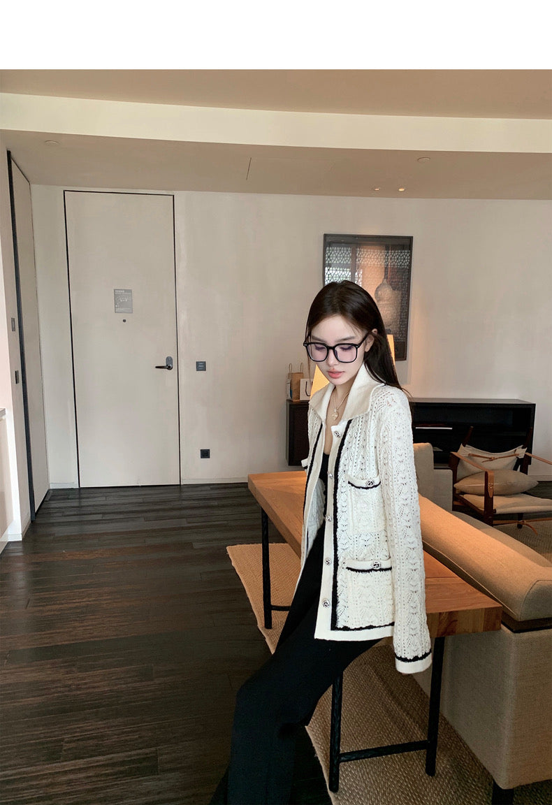 Sun. 王一博同款 鬆弛感小香時髦人的愛拼色針織外套 白
