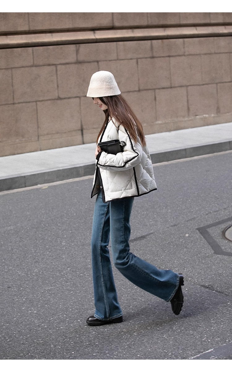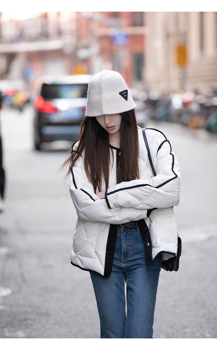 Sun. 經典山茶花 菱格白鴨絨外套