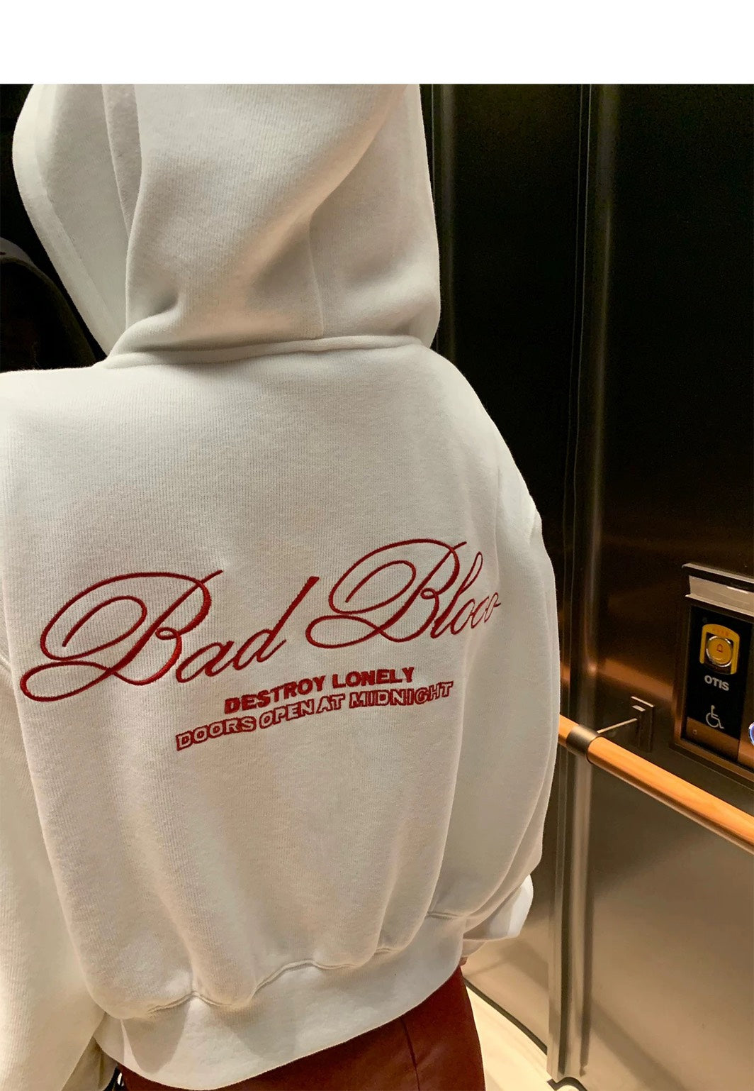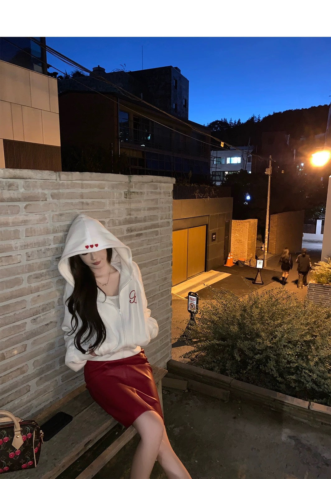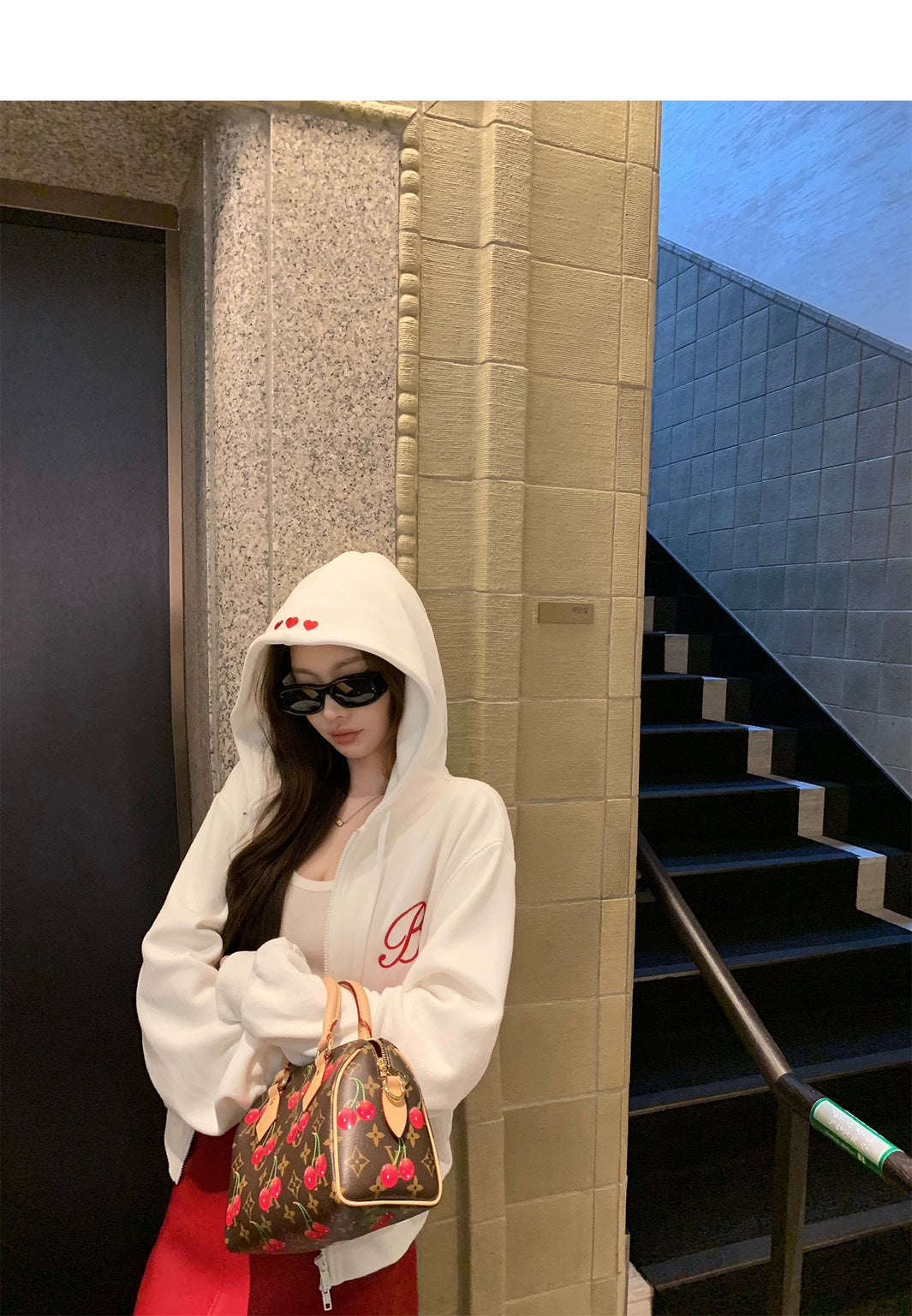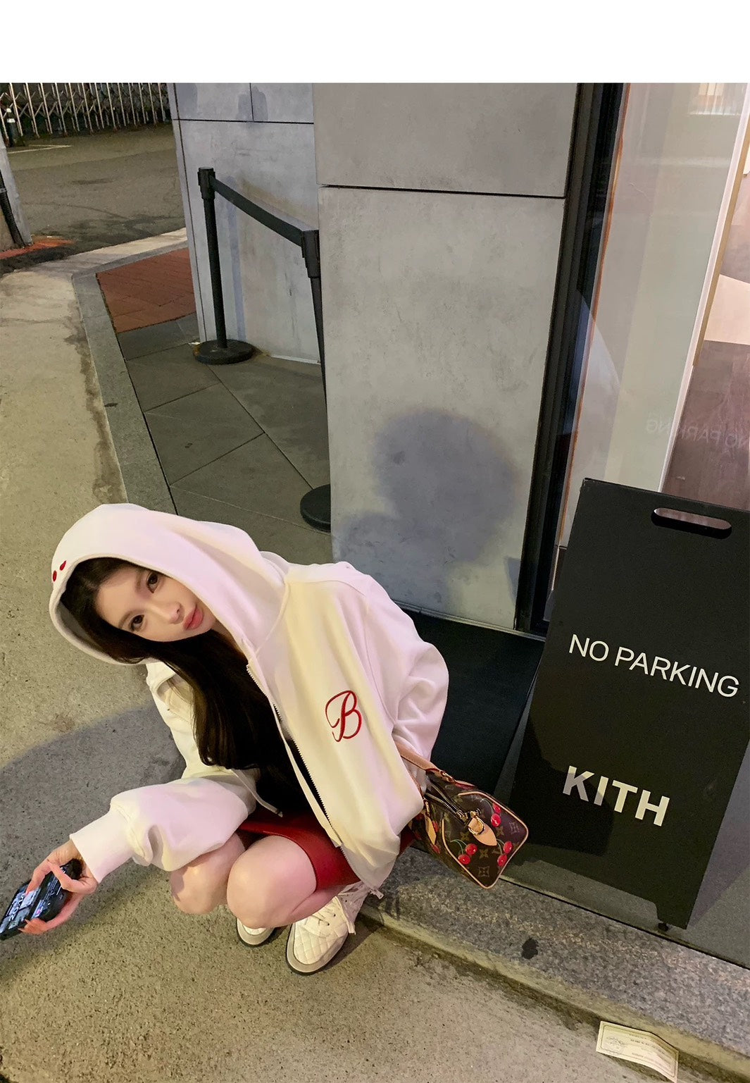 Thu. 女idol週末韓里韓氣刺繡連帽外套 紅刺繡