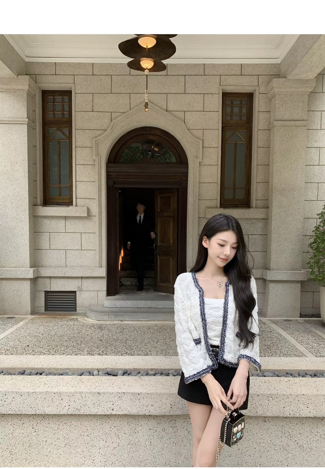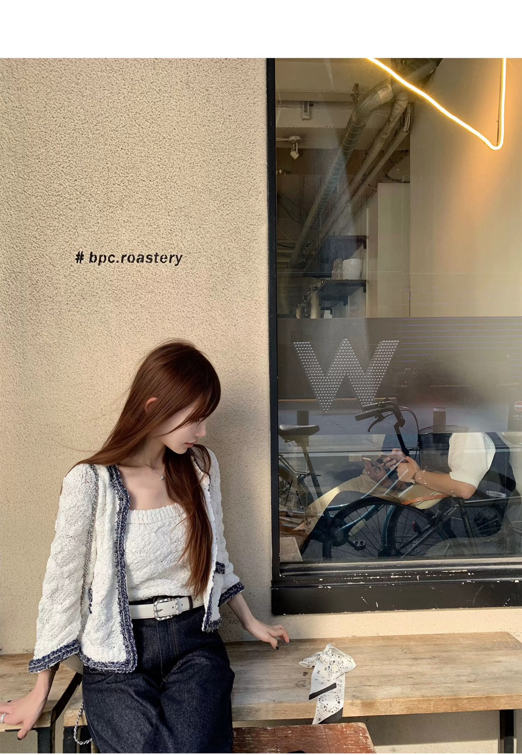 Thu. 小香特種紗牛仔藍撞色針織背心外套2件組