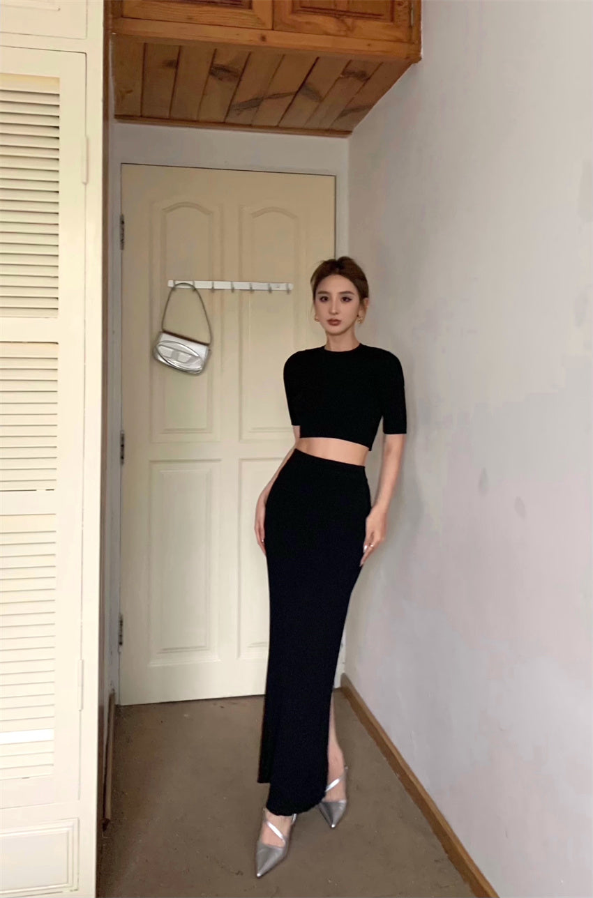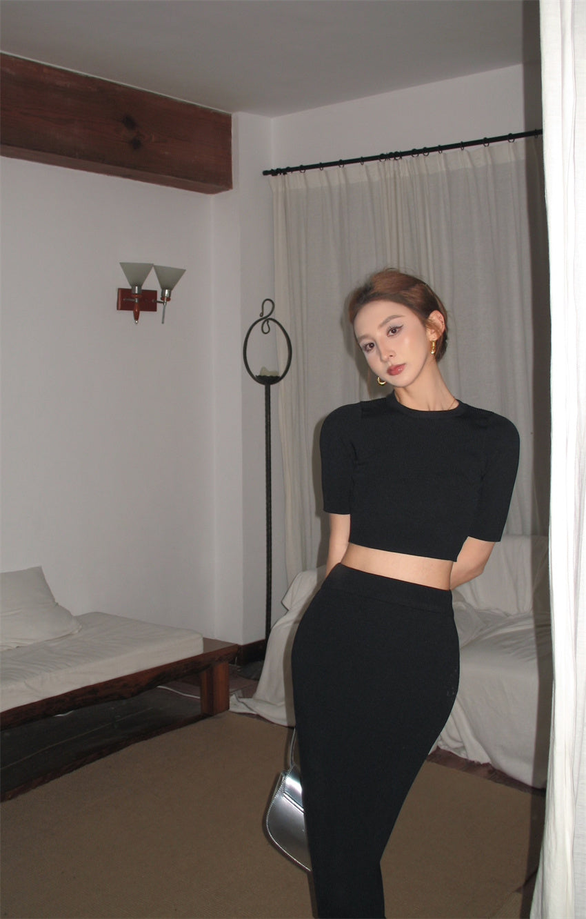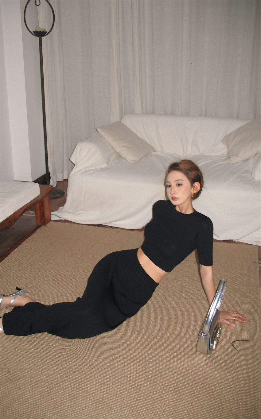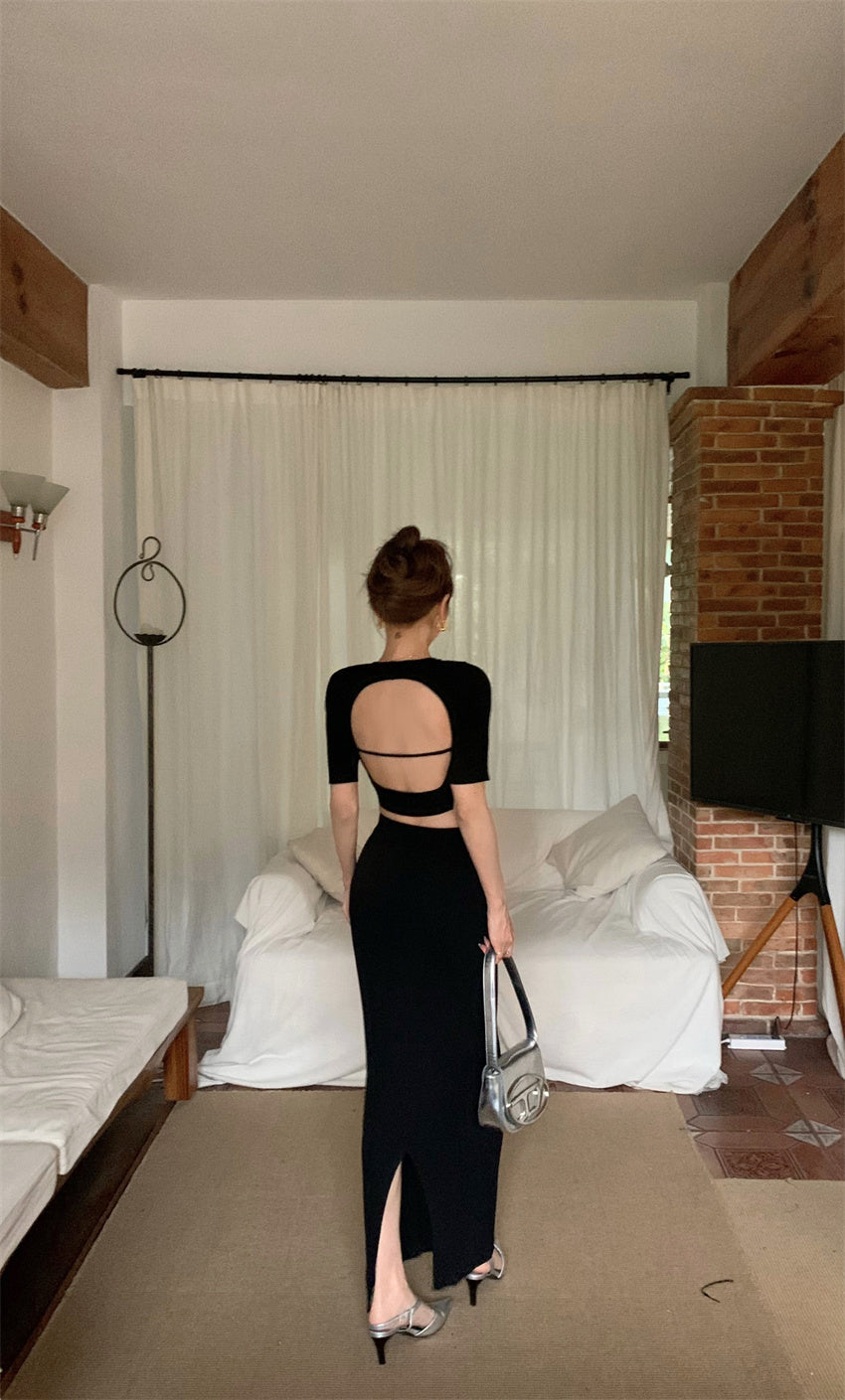 Thu. 挖背設計上衣 卡其/黑
