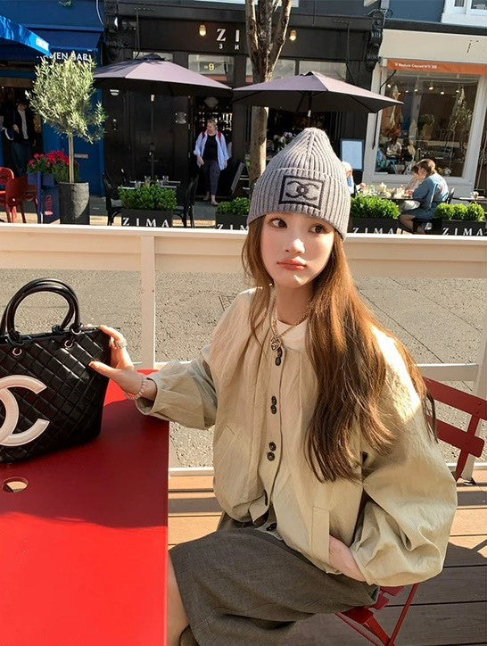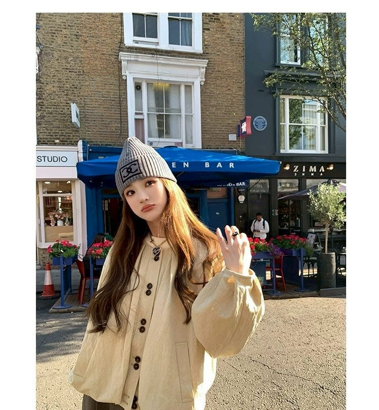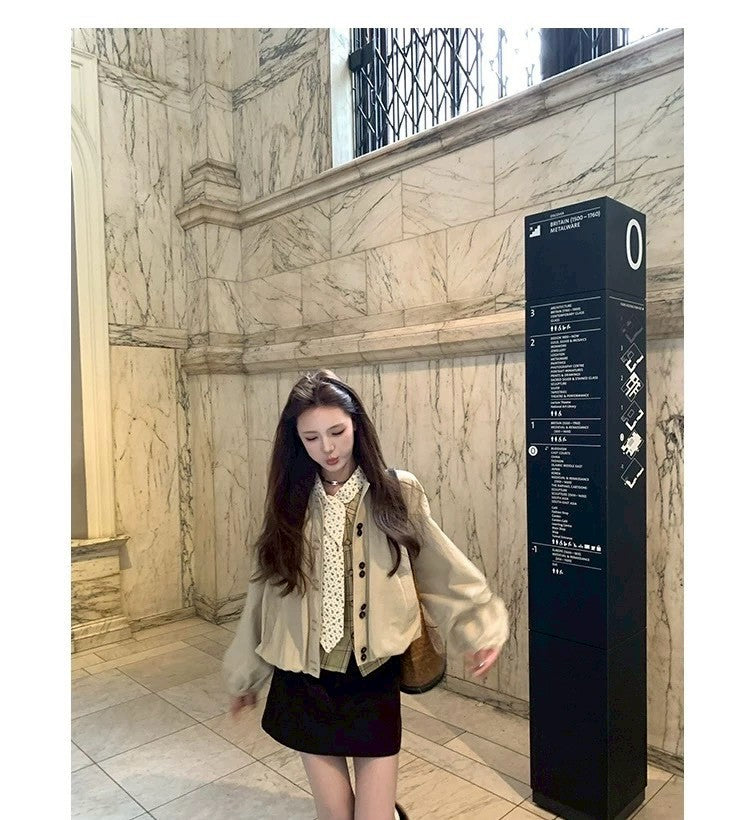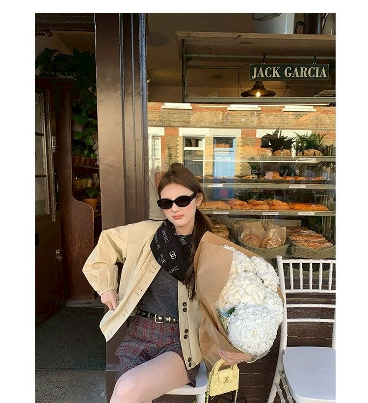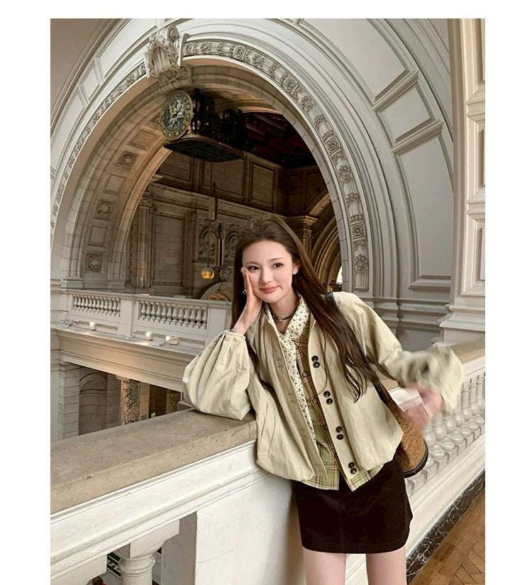 Thu. 明媚香港 復古花苞圓領夾克 卡其
