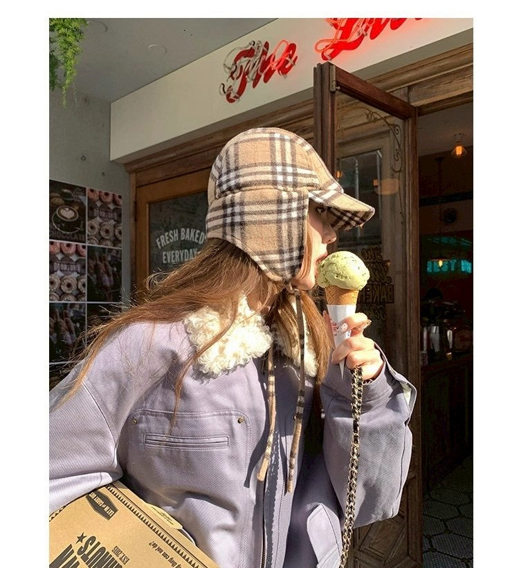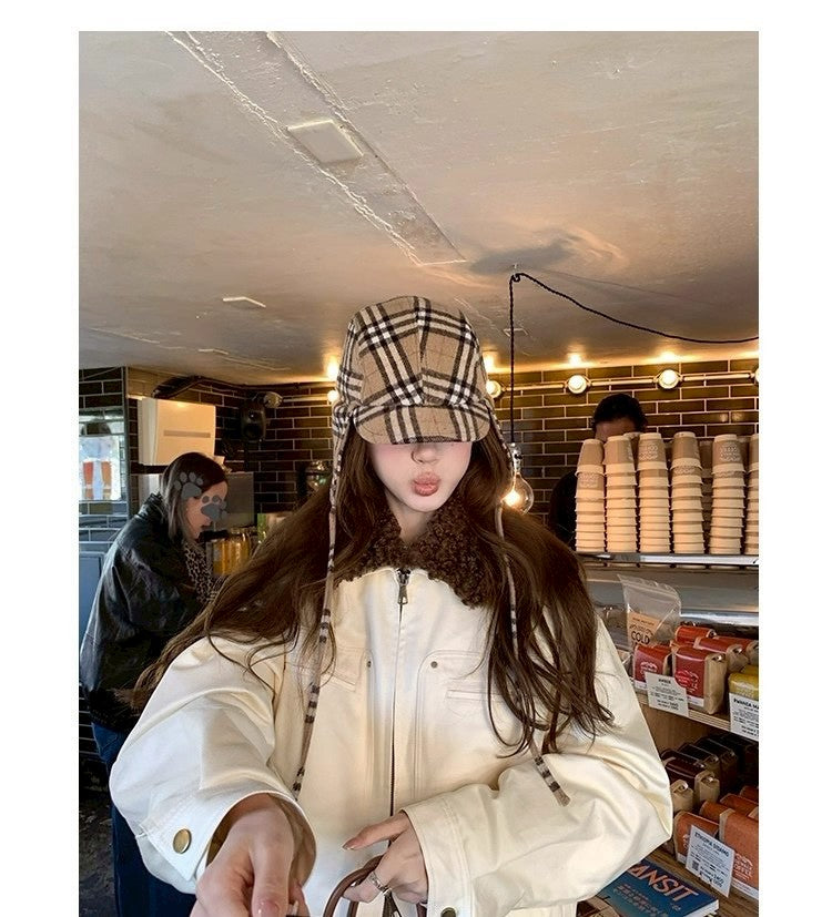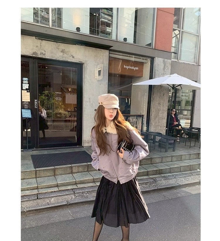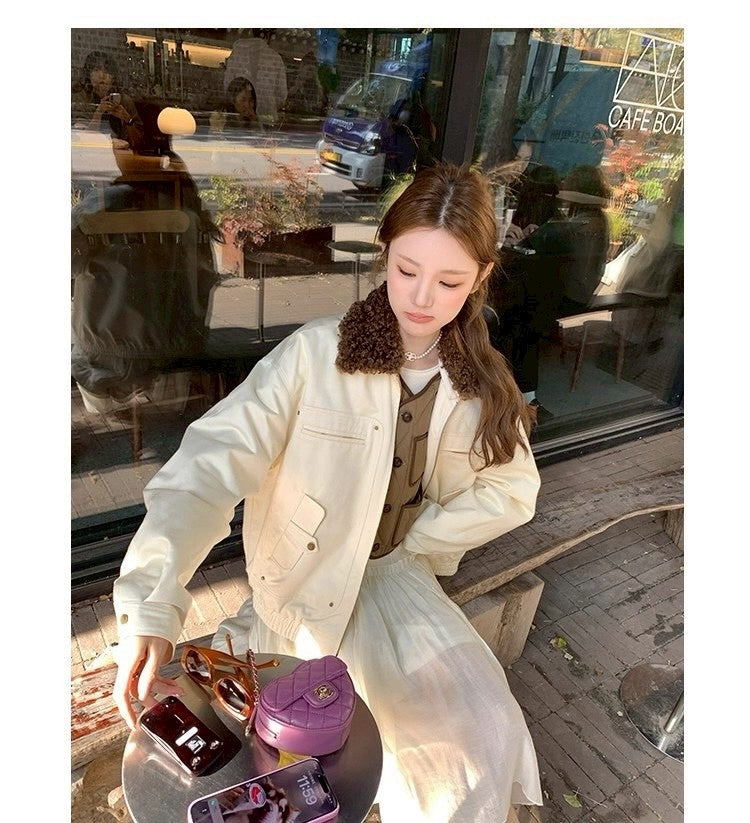 Thu. 橡子街巴恩風拼接毛領工裝外套 紫/米白