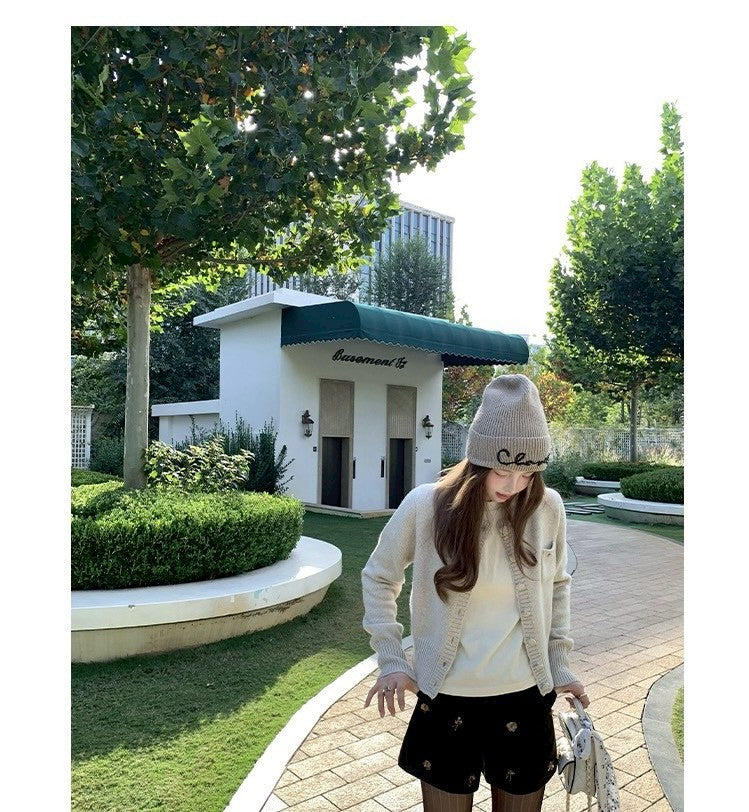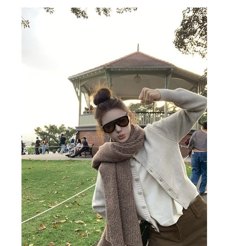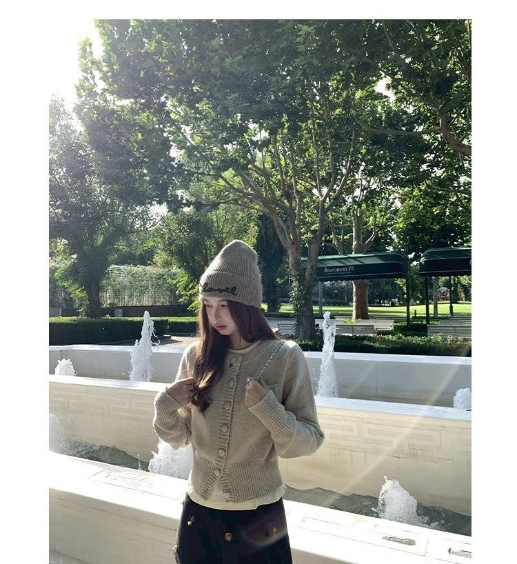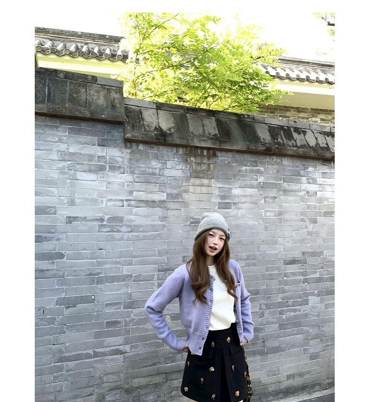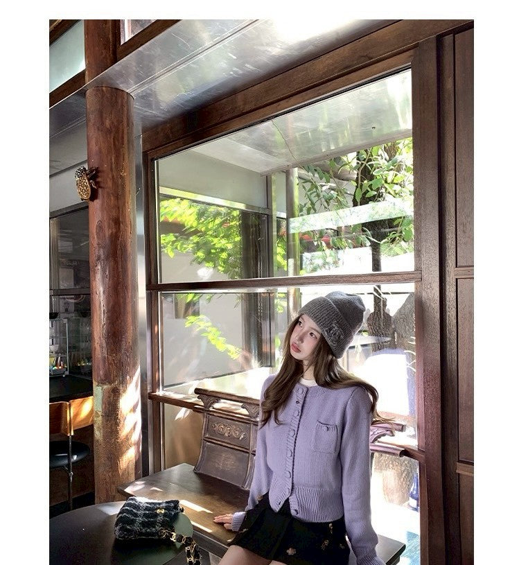 Thu. 海灣花園 混紡羊毛百搭針織開衫 紫/灰米