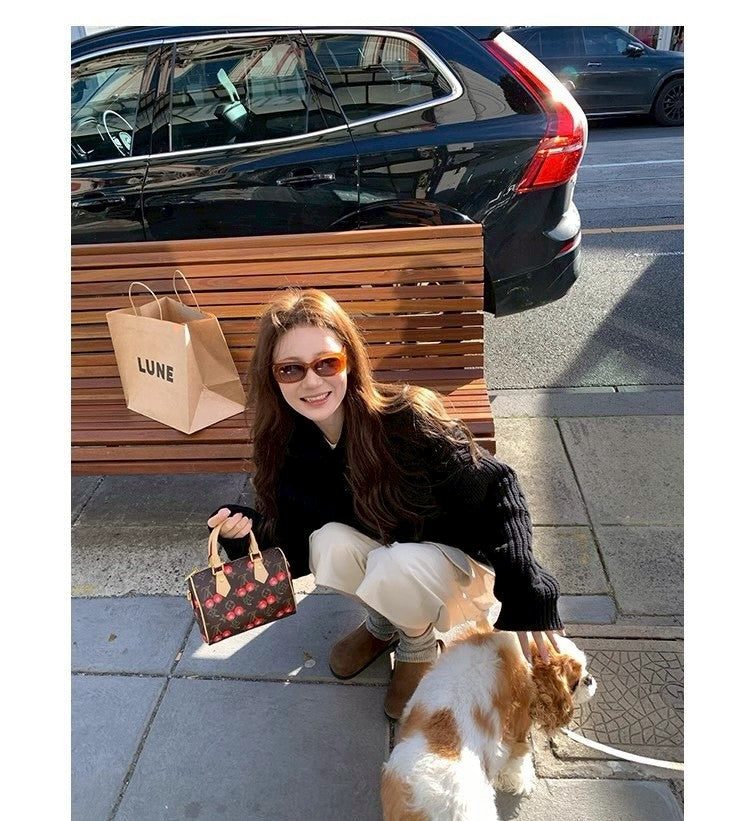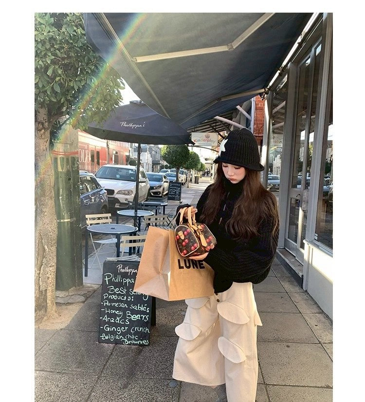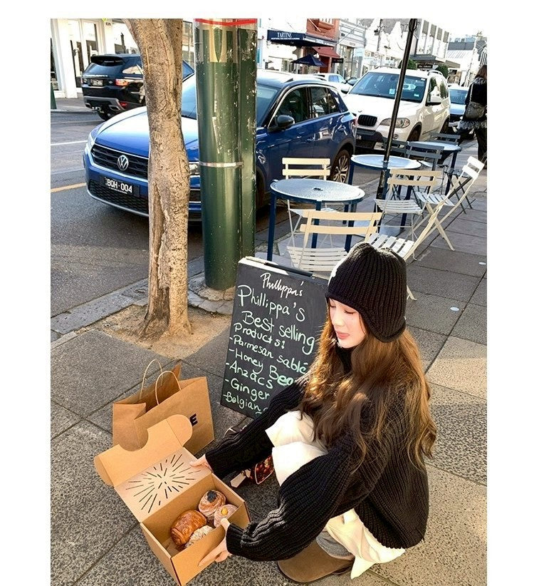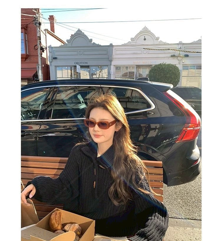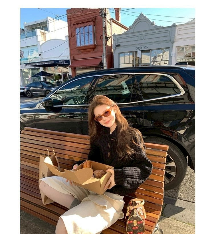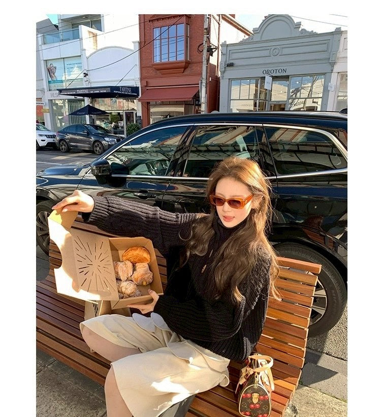 Thu. 濟州橙酒 厚麻花鈕扣高領針織上衣 黑
