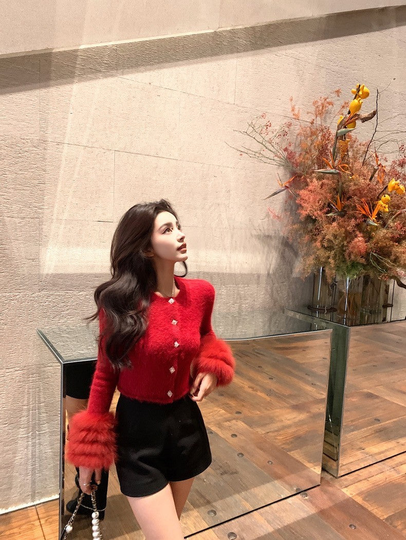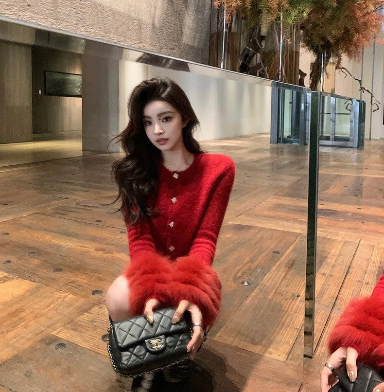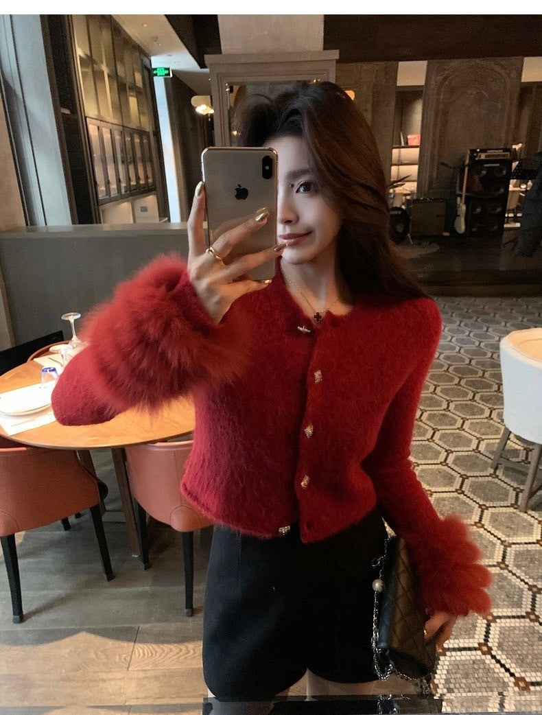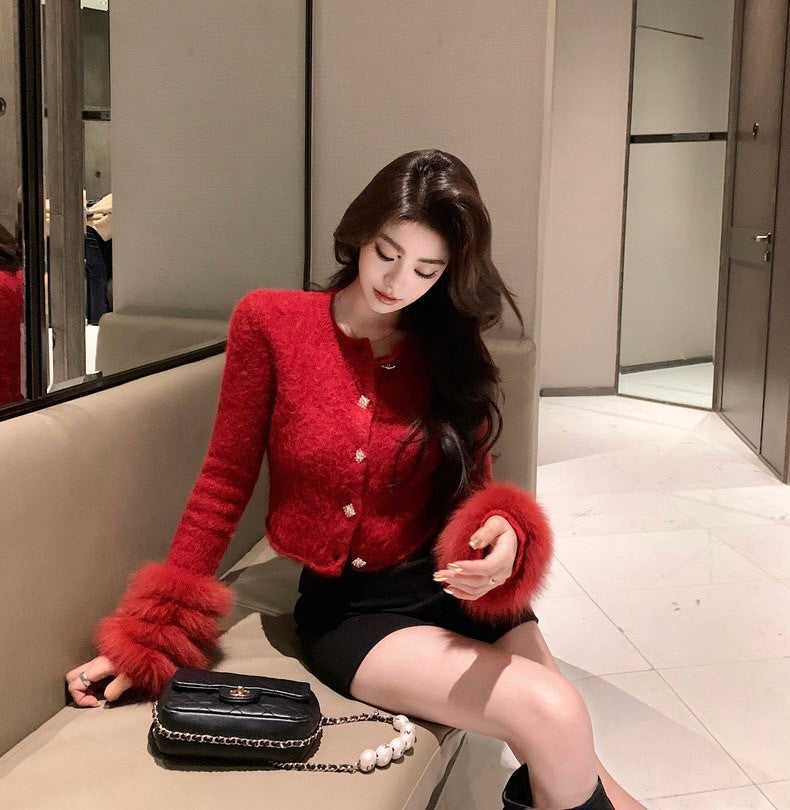 Thu. 矜貴戀人 奢絨羊駝毛 狐狸袖千金針織上衣 紅