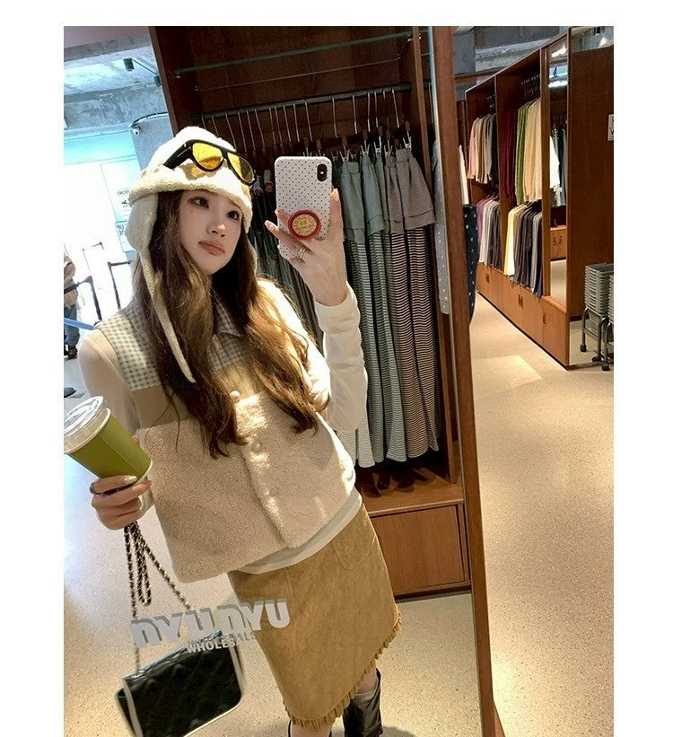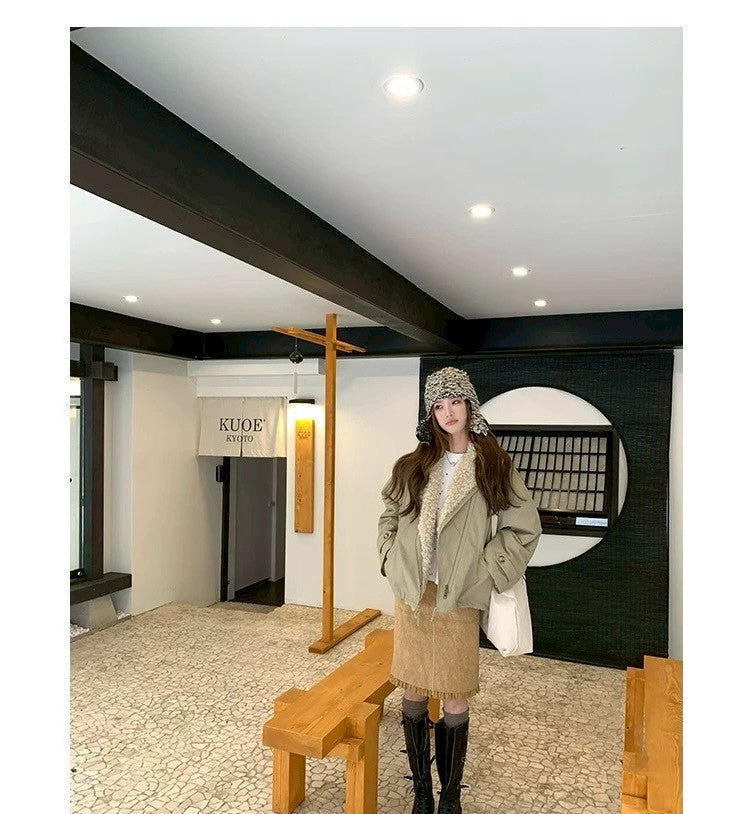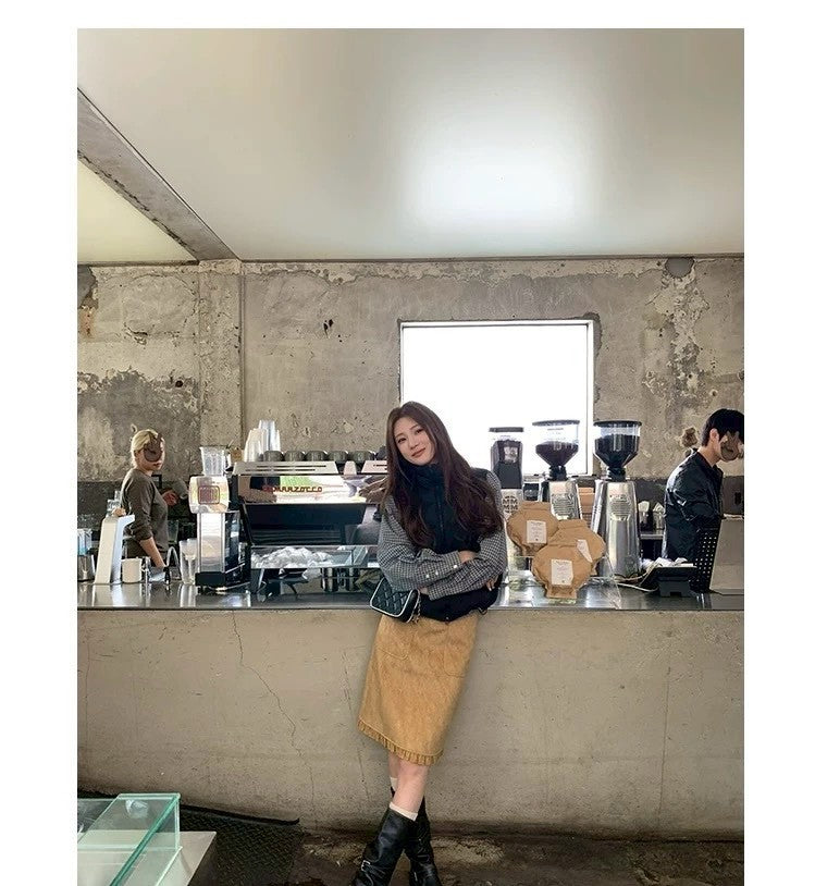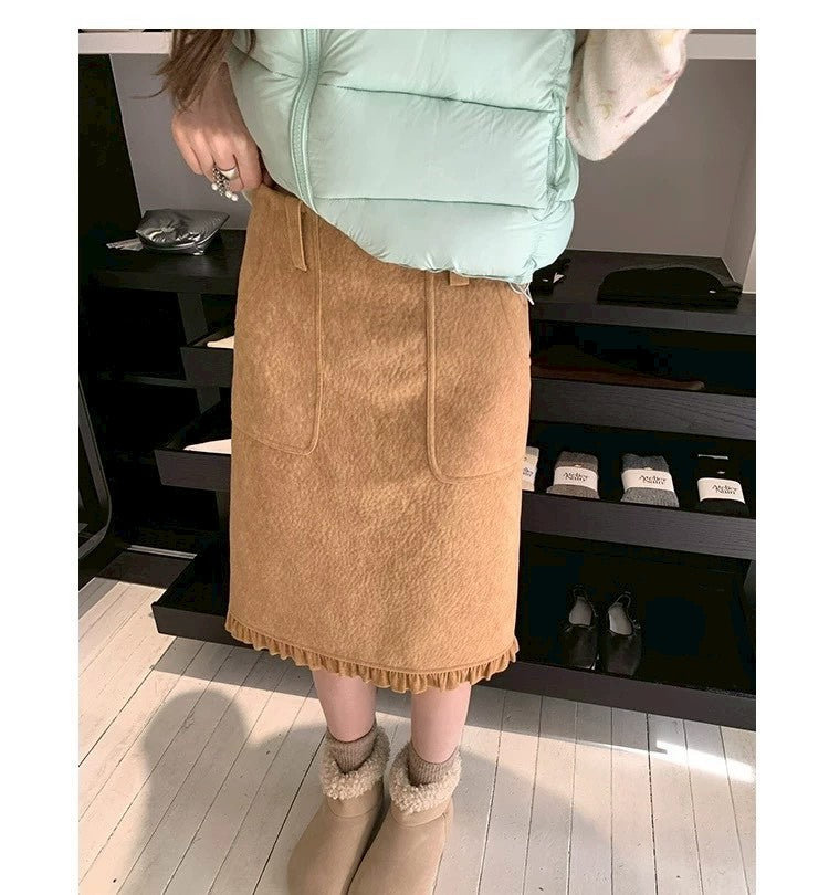 Thu. 秋冬復古褶皺半身裙 卡其