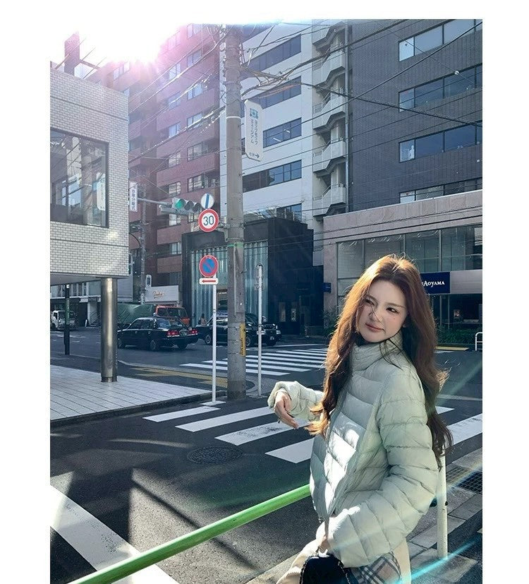 Thu. 阿爾納花園高90國際絨美式排骨羽絨外套 香檳金/蘋果綠