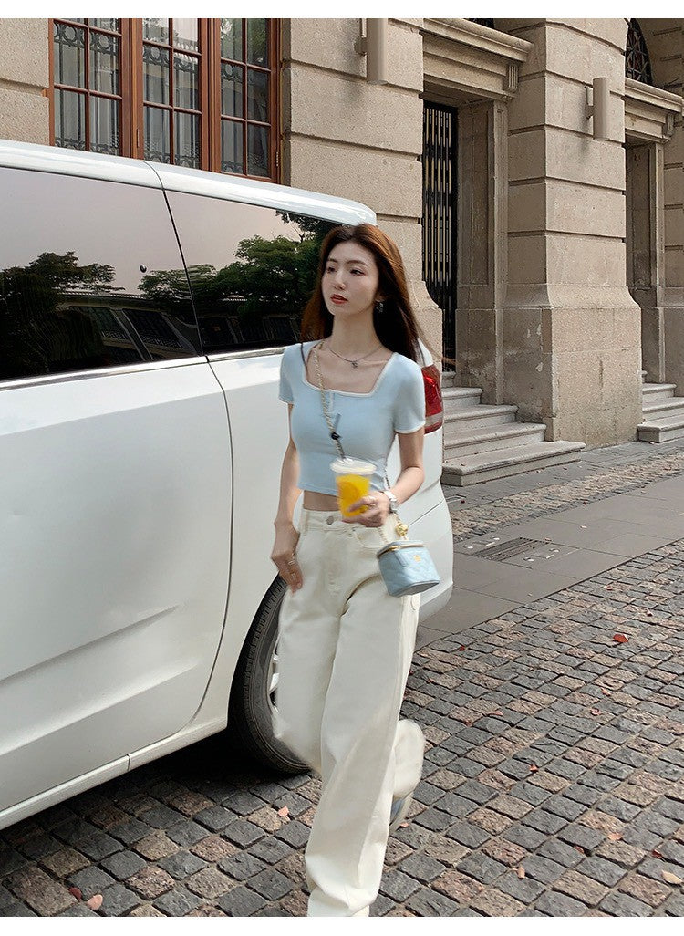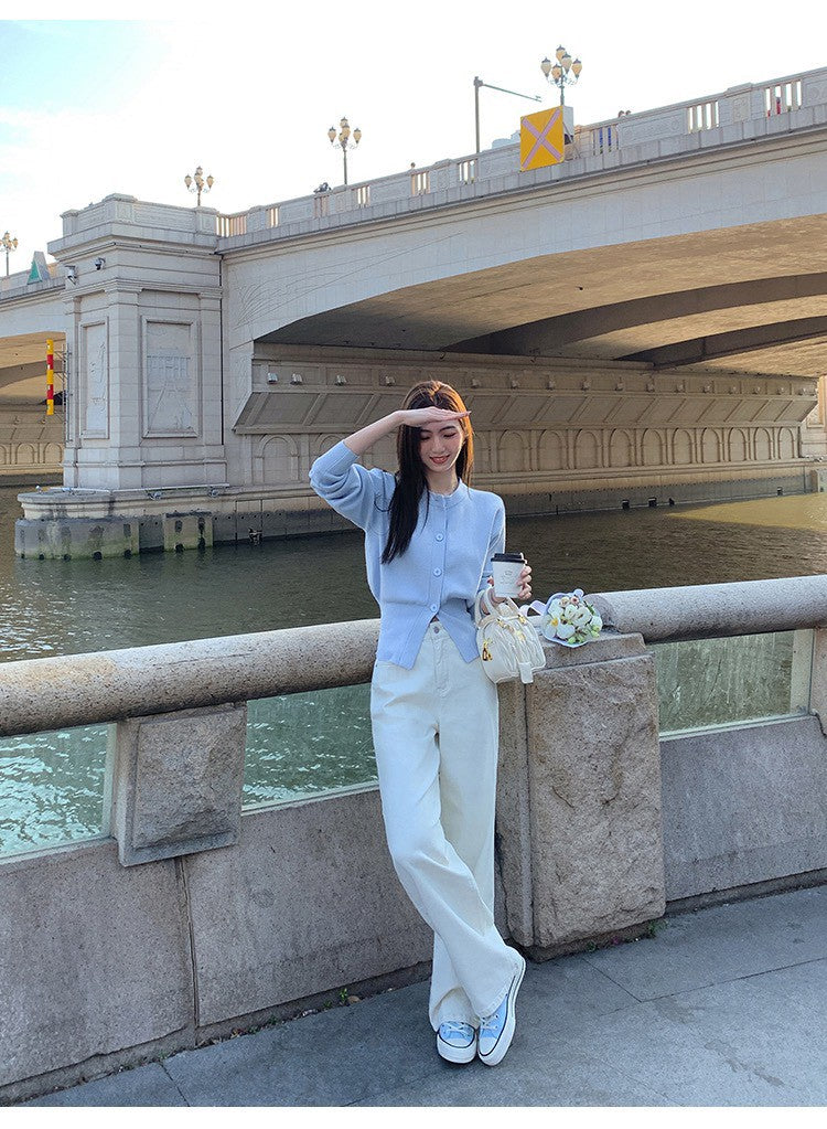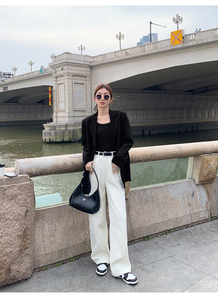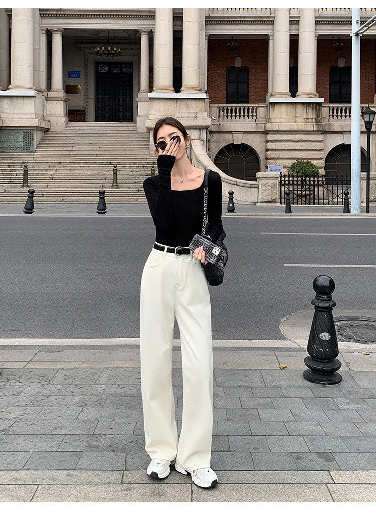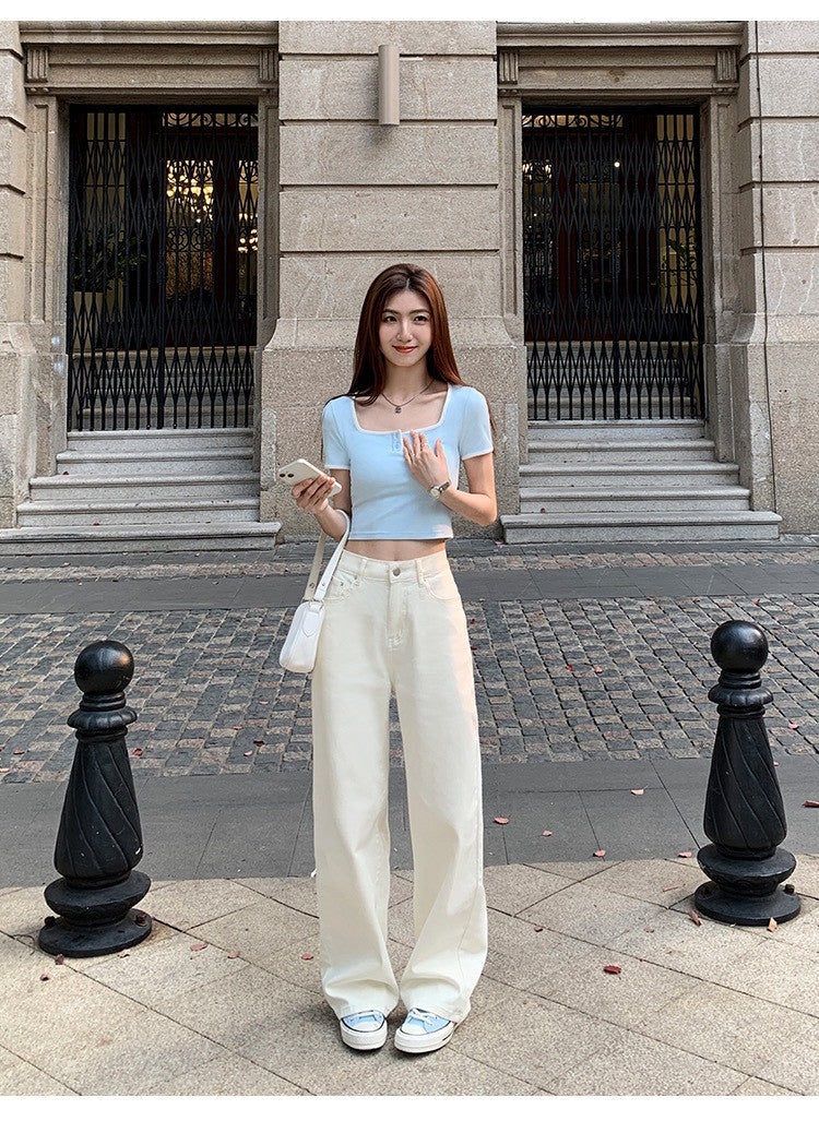Tue. 休閒小白褲 日常百搭高腰直筒褲