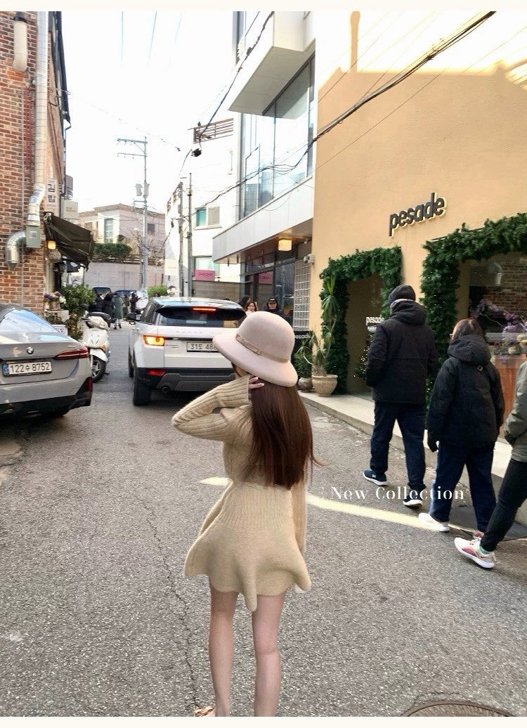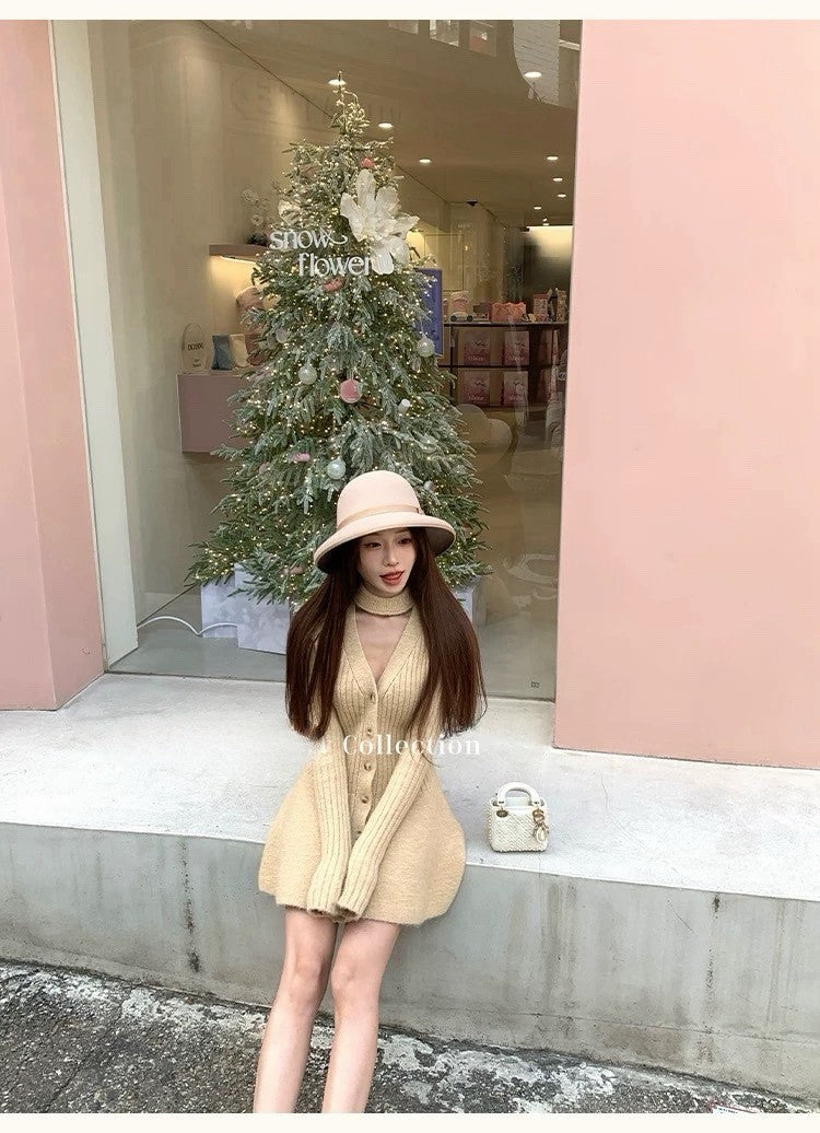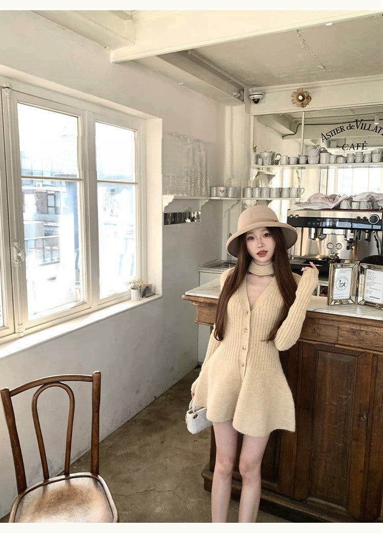 Tue. 傾心芭蕾氣質小心機針織收腰連身裙 奶黃