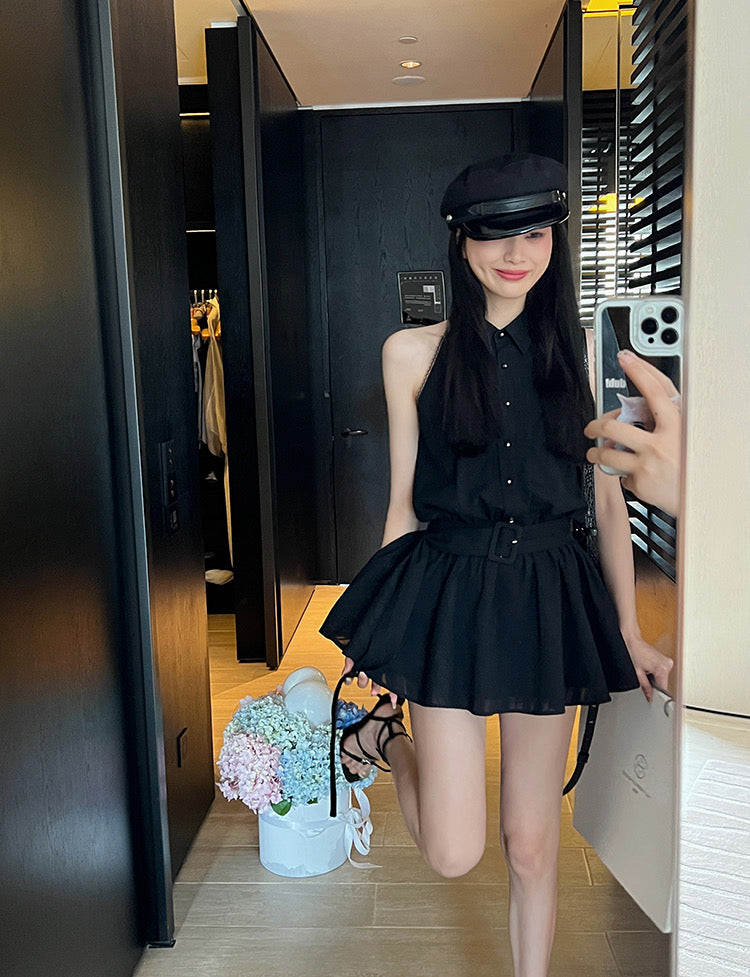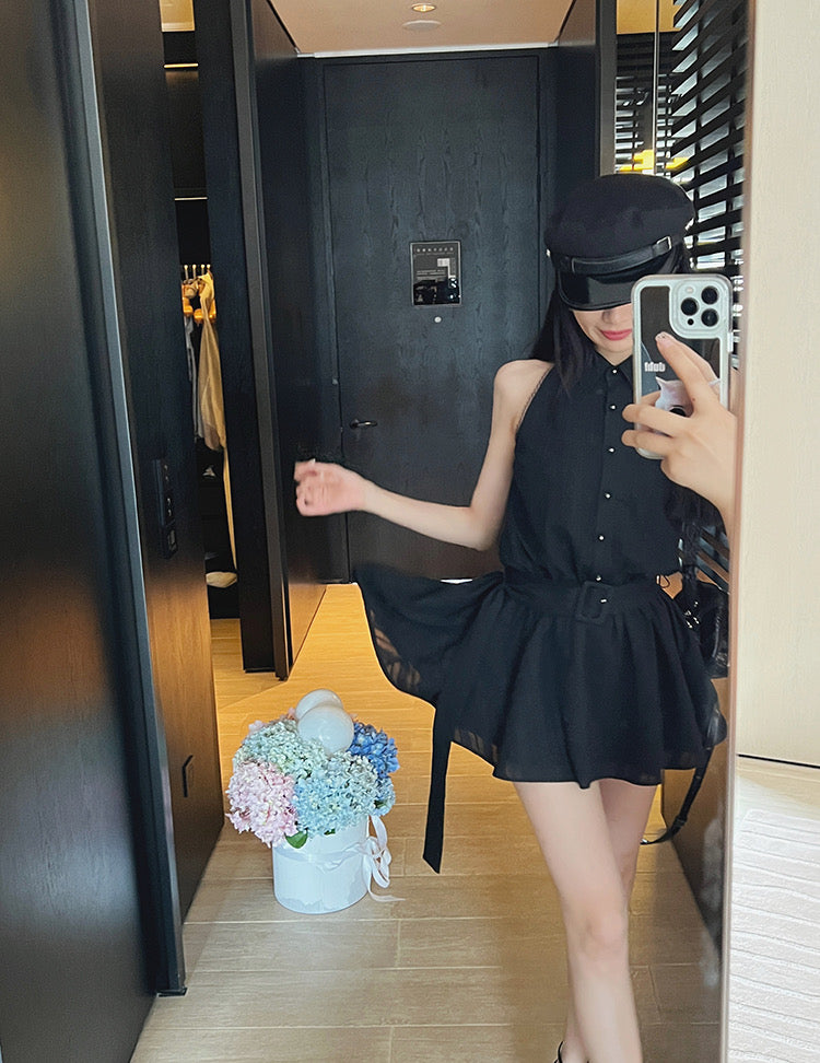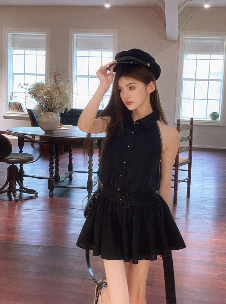 Tue. 初戀氣質 溫柔挖肩襯衫連身裙 黑