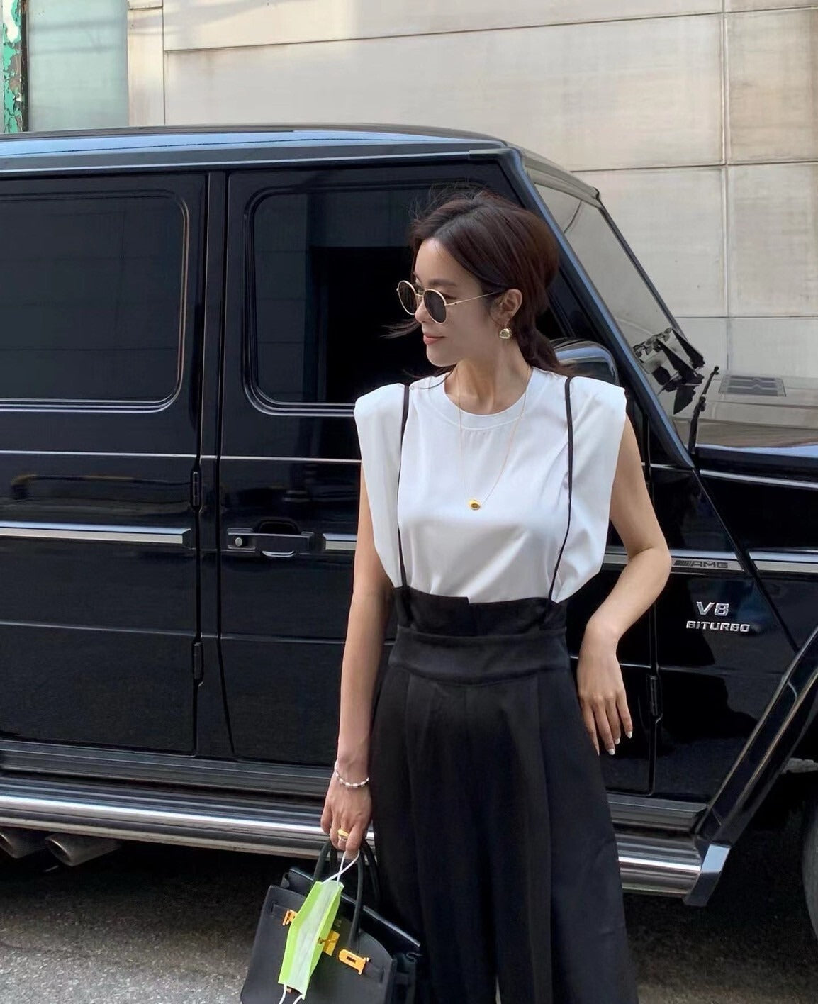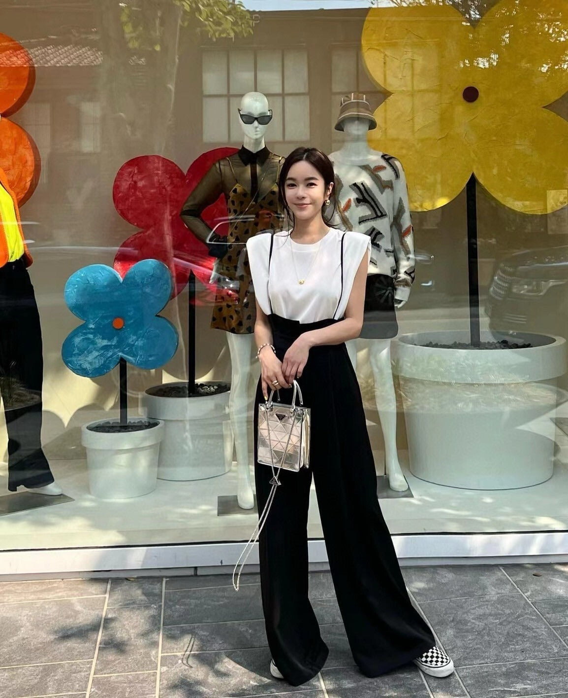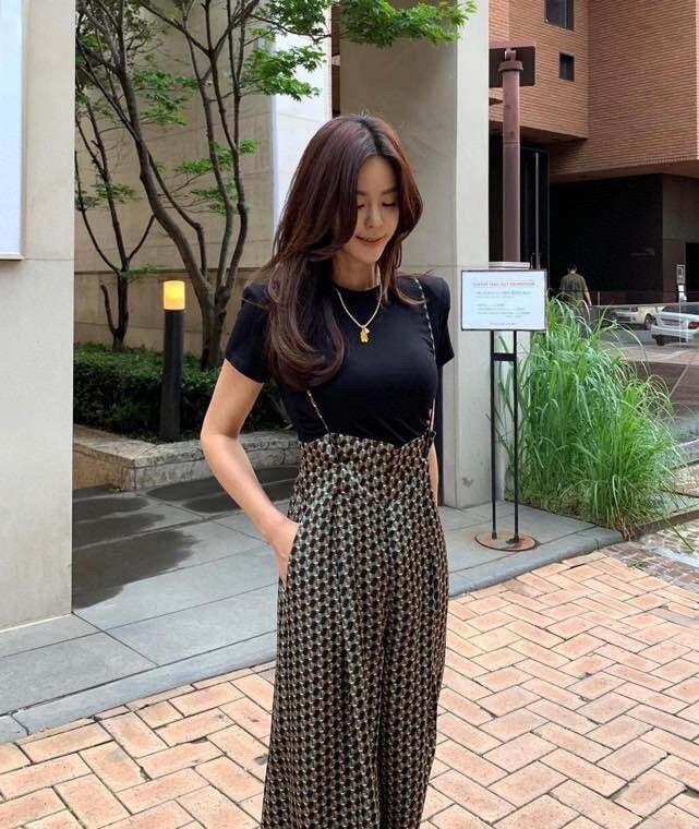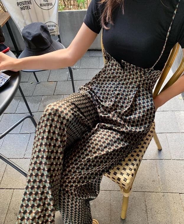 Tue. 復古極高腰闊腿休閒褲 印花/純黑
