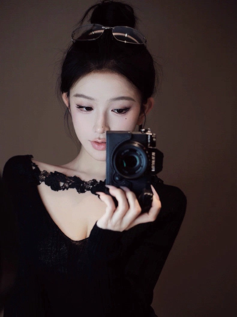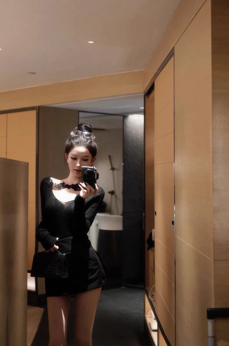Tue. 心動蕾戀貓語 坑條羊毛 V領打底上衣 黑